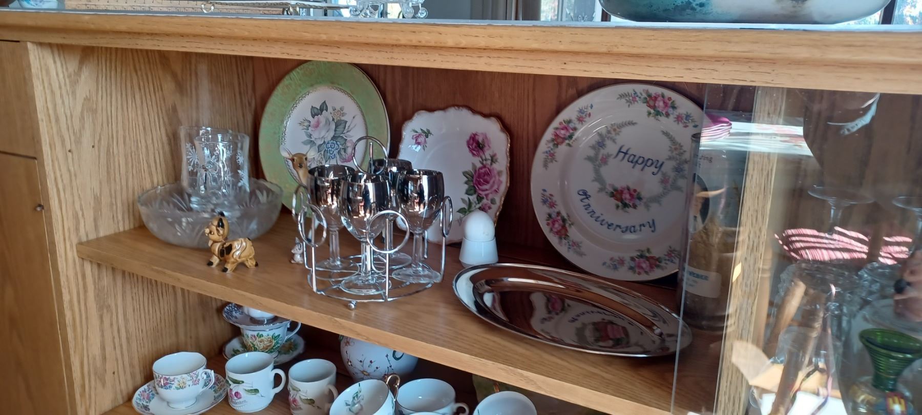 CHINA AND PORCELEIN COLLECTION (TOP TWO GLASS DOOR AREA). EXCLUDES MEMORIAL CANDLE.