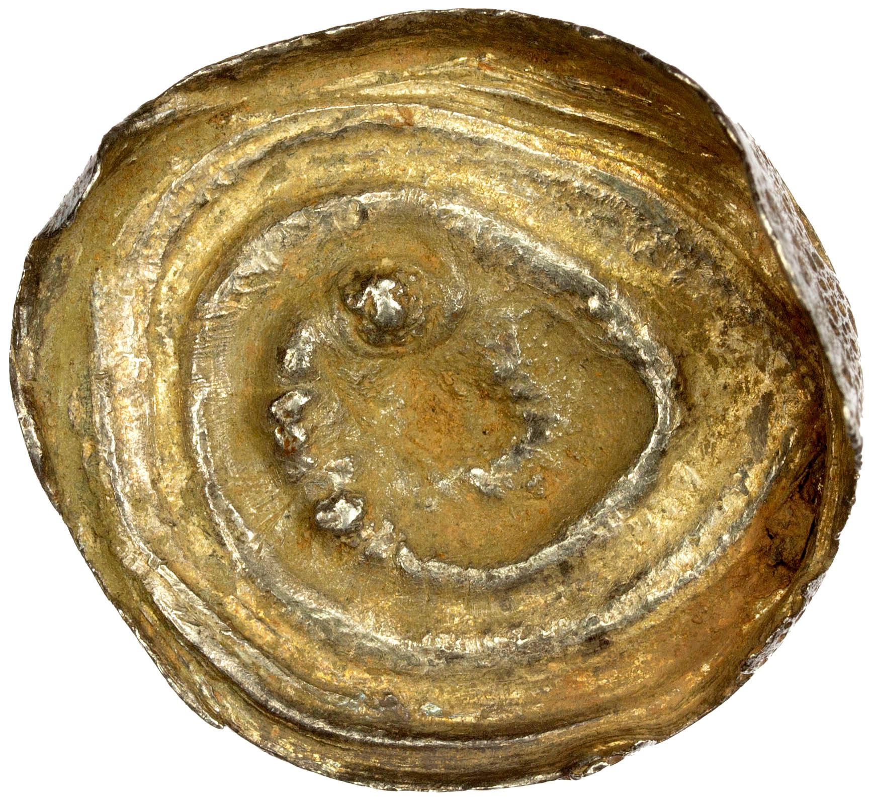 CHINA: AR sycee (61.27g), 32mm wide, known as Shan snail sycees, made by the Shan/Dai people of Shan State (Burma), southern Yunnan, and northern Thailand, VF, ex Howard A. Daniel III Collection.