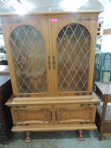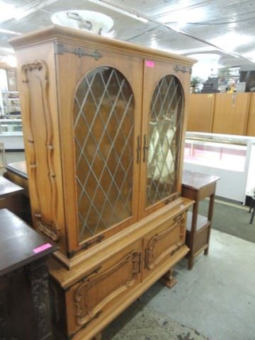 CHINA CABINET DISPLAY CURIO LEADED GLASS DOORS