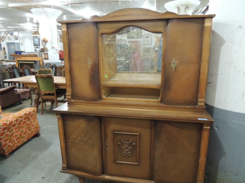 CHINA CABINET VINTAGE ART DECO STYLE. 55" X 68" H X 19" W AS SHOWN SEE PHOTO FOR MORE DETAILS.