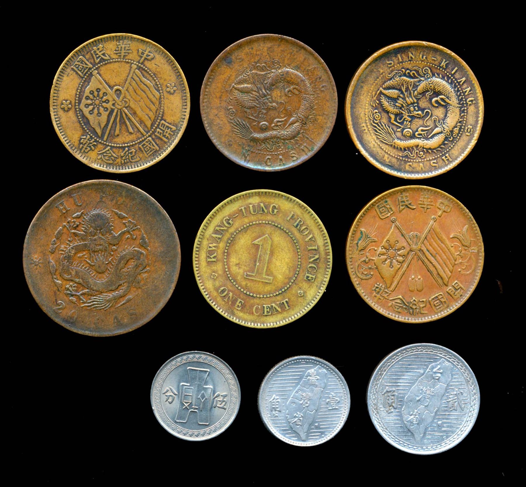 CHINA Empire & Republic A 9 Piece Lot of Mixed Denominations