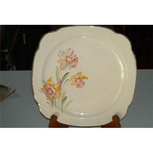 Featured for today's auction are four (4) square designed, P.C.P. Plates named REGINA which is stamped on the bottoms of all four. These lovely plates have iris flowers decorating the left side. The plates measure 10 inches in diameter. They also have silver trimmed edges. Bottom of each plate is stamped P.C.P. Company-Regina. One plate has a number: G11 - The other three plates have the number: F33. All plates however are identical. Some small crazing is seen but otherwise unremarkable. Excellent Condition.