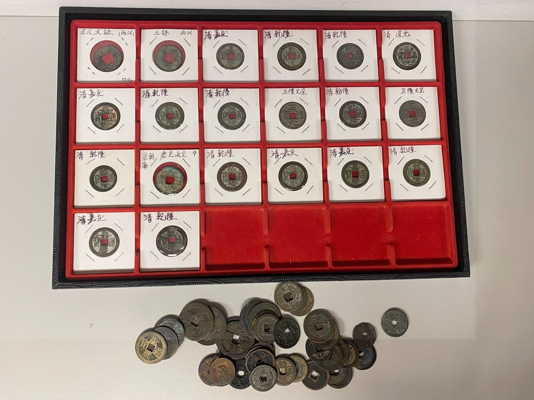 CHINA: LOT of 60 cash coins, mostly Qing (incl. one each of Shun Zhi of Jizhou Garrison and Yong Zheng of Yunnan; the rest various rulers), the rest from various previous dynasties from Eastern Han to Southern Ming (incl. two of Jin's Zheng Long, both 4-stroke type, and one of Yuan's Zhi Da; most 1-cash with a few larger denominations), plus a few of Annam and foreign imitations, as well as a Confucius medal dated CD1908; most in average conditions for their type, some better; retail value $400, lot of 60 pieces.