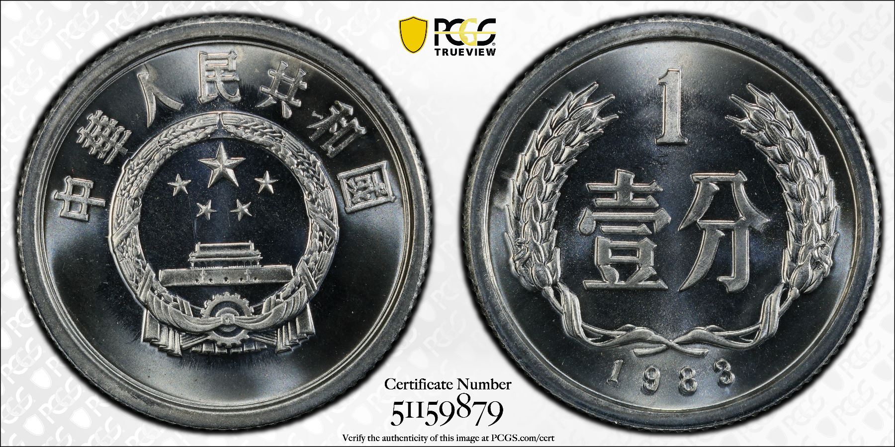CHINA (PEOPLE'S REPUBLIC): 1 fen, 1983, KM-1, Sun-A46b, a spectacular example, PCGS graded Proof 68.