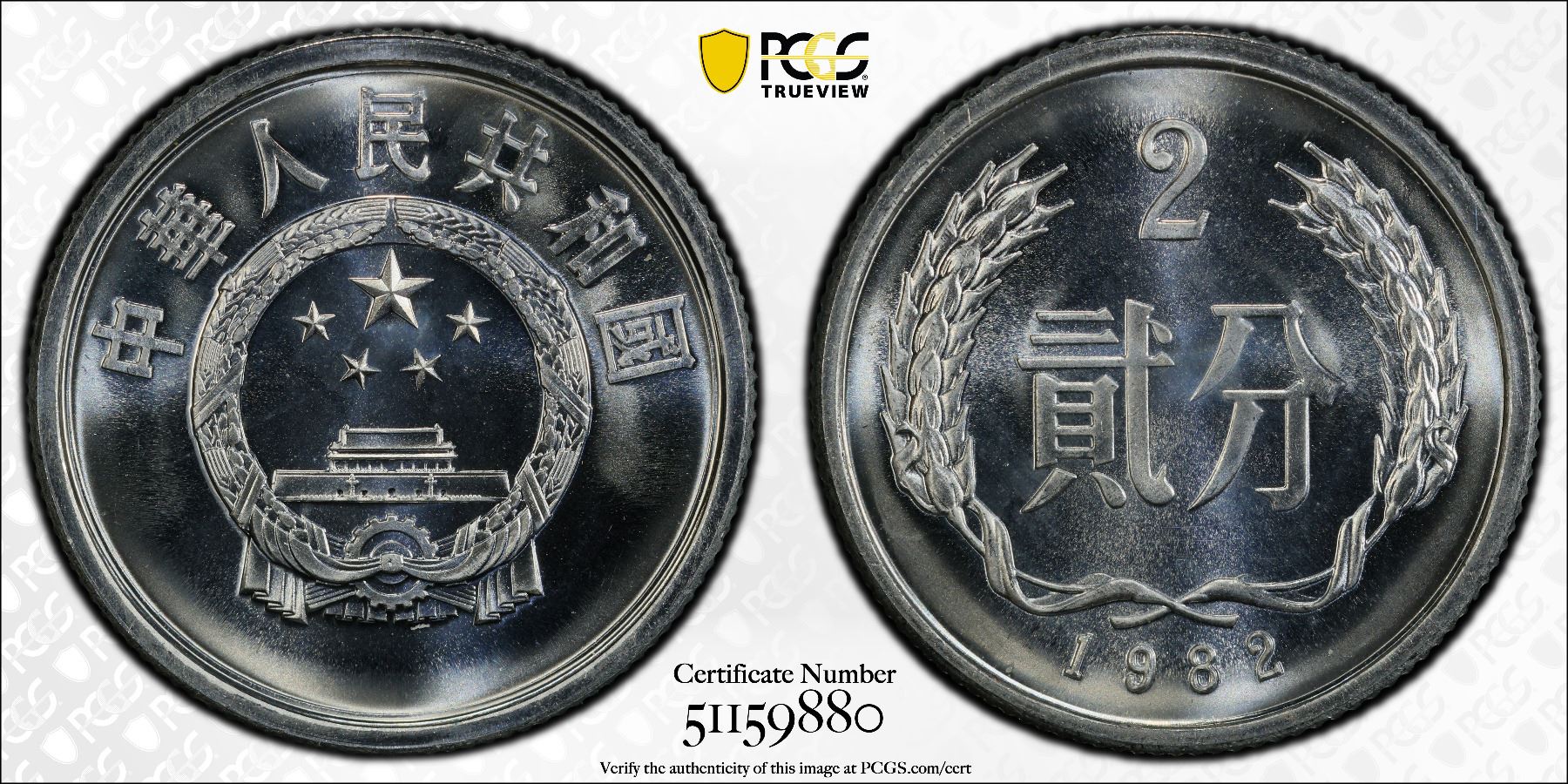 CHINA (PEOPLE'S REPUBLIC): 2 fen, 1982, KM-2, Sun-A44b, an incredible example, PCGS graded Proof 67.