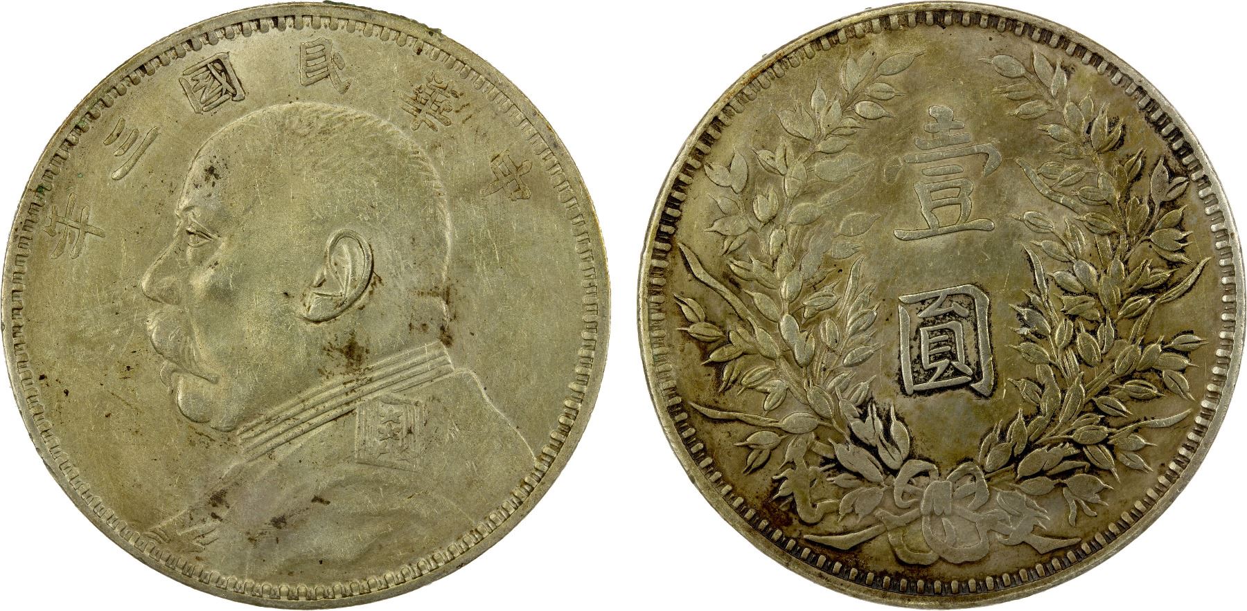 CHINA: Republic, AR dollar, year 3 (1914), Y-329, L&M-63, Yuan Shi Kai in military uniform, light surface hairlines, AU.