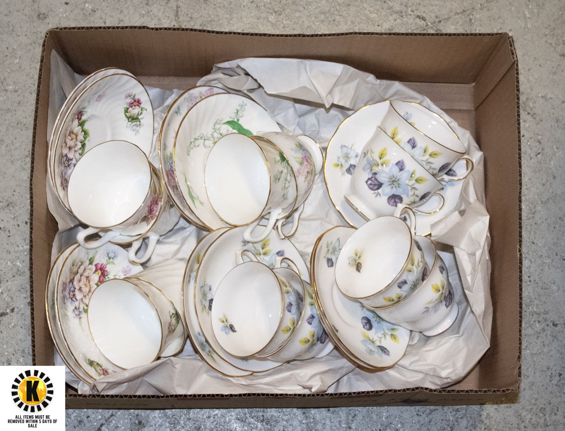 CHINA TEACUPS/SAUCERS- LOT OF 12 SETS ASSORTED