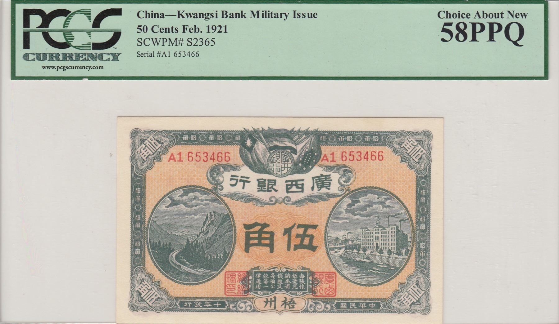 China, 50 Cents, 1921, AUNC, Ps2365, first prefix