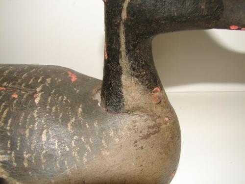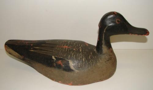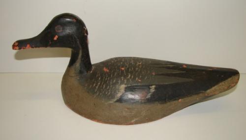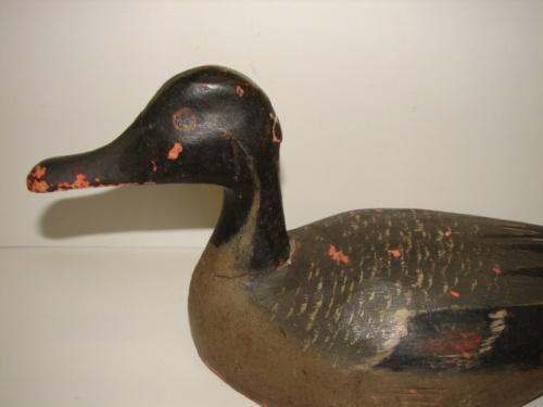 CHINCOTEAGUE, VIRGINIA PINTAIL DRAKE DECOY. Unknown carver. Shows major signs of wear and loss to paint. Neck is cracked and was nailed to body some time ago.