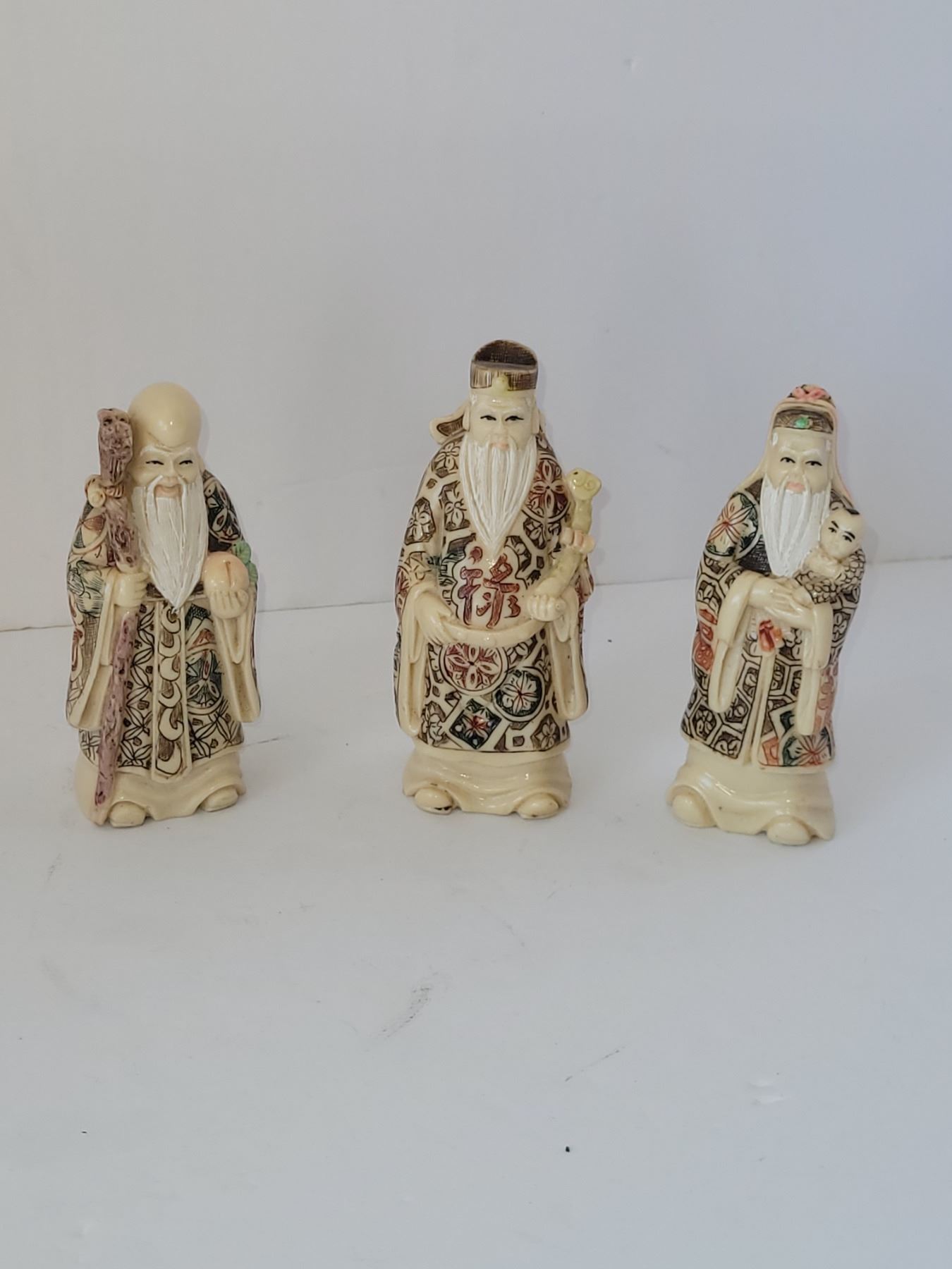 CHINESE 3 WISE MEN STATUES IVORY OR RESIN? 1.5" X 3.75"-4"