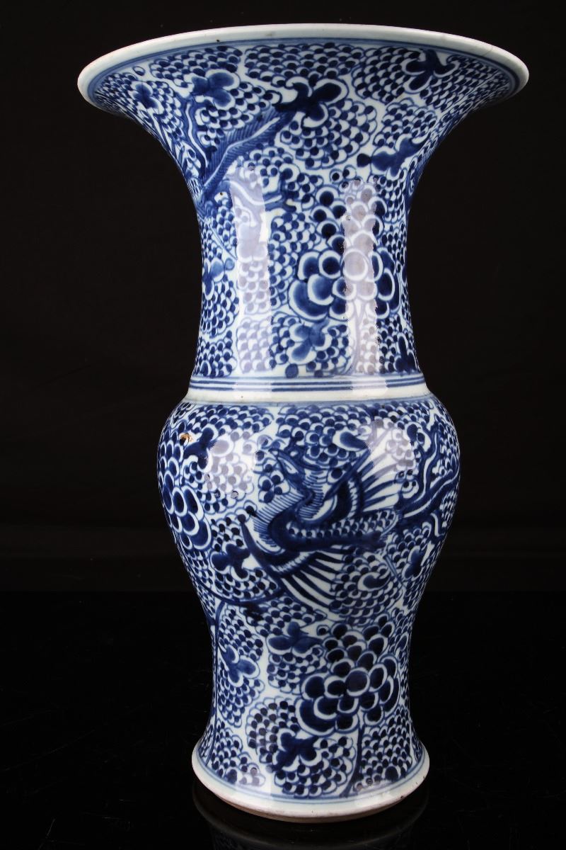 [CHINESE]A BLUE AND WHITE PORCELAIN VASE PAINTED WITH TWINE PATTERNS (MINOR HAIRLINE ON LIP) W:10.25" H:16.5"青花纏枝紋花觚 (瓶口有铳)