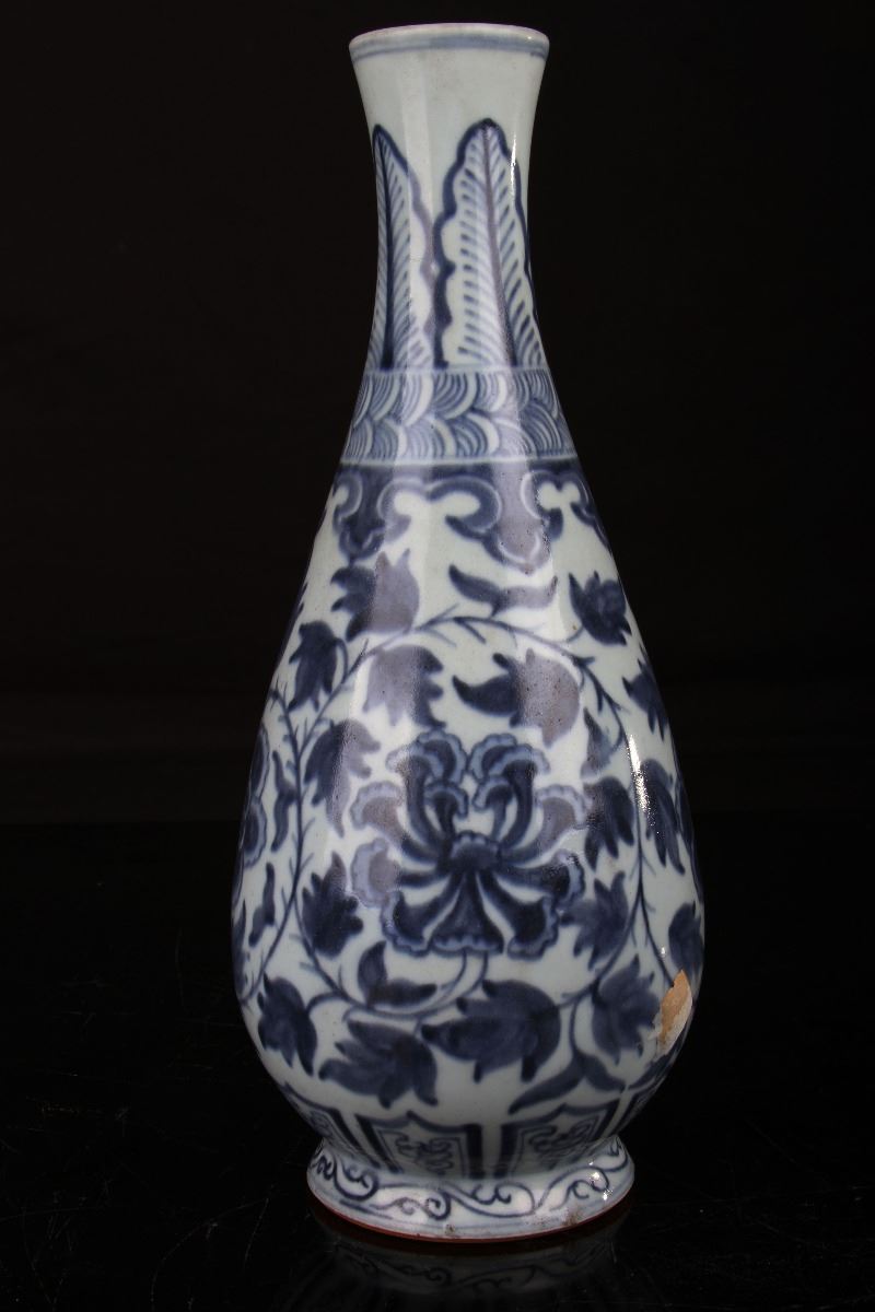 [CHINESE]A BLUE AND WHITE VASE PAINTED WITH FLOWERS W:3.75" H:10"青花花卉紋玉壺春瓶
