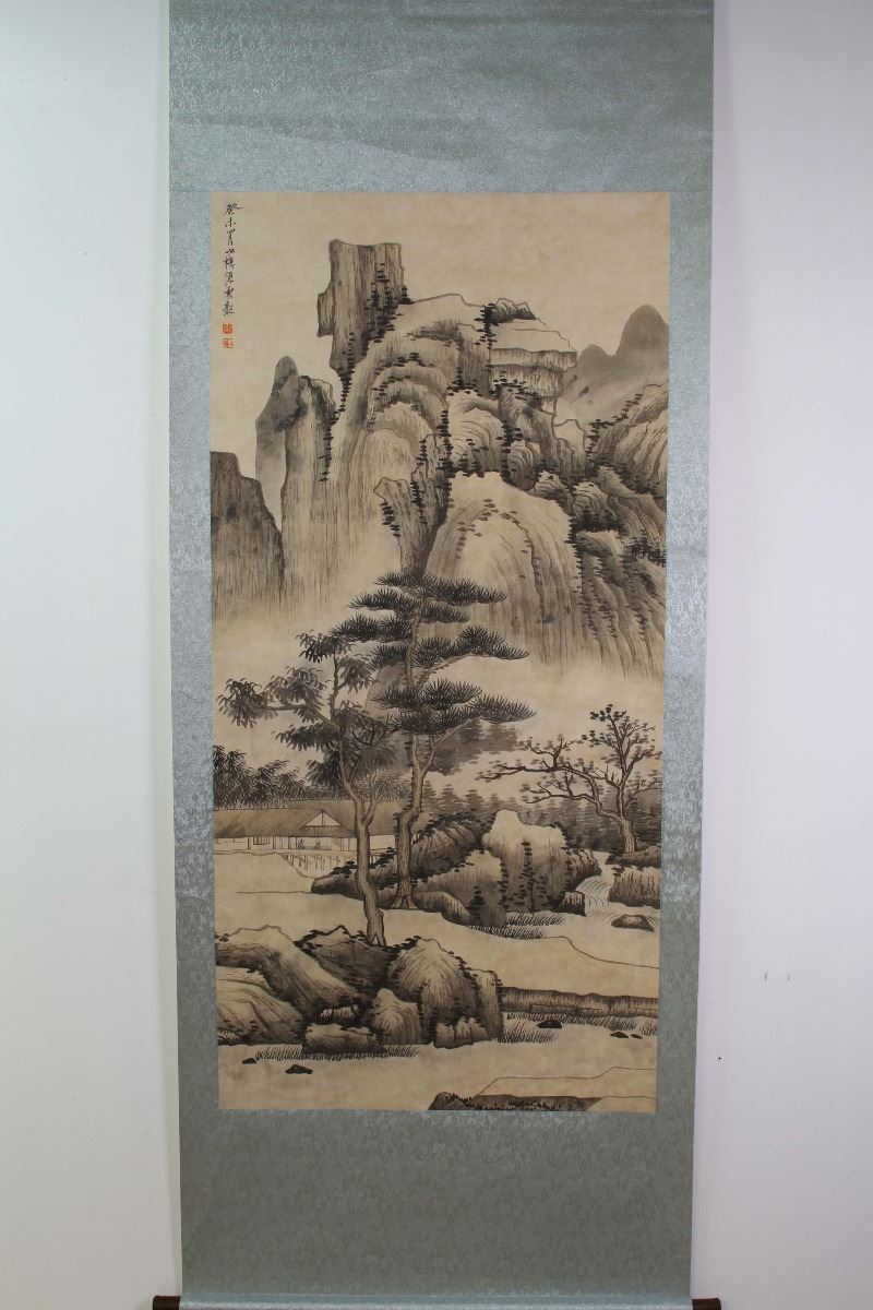 A CHENSHAOMEI INSCRIBED PAINTING SCROLL OF LANDSCAPE W:25 H:51"陈少梅款山水图