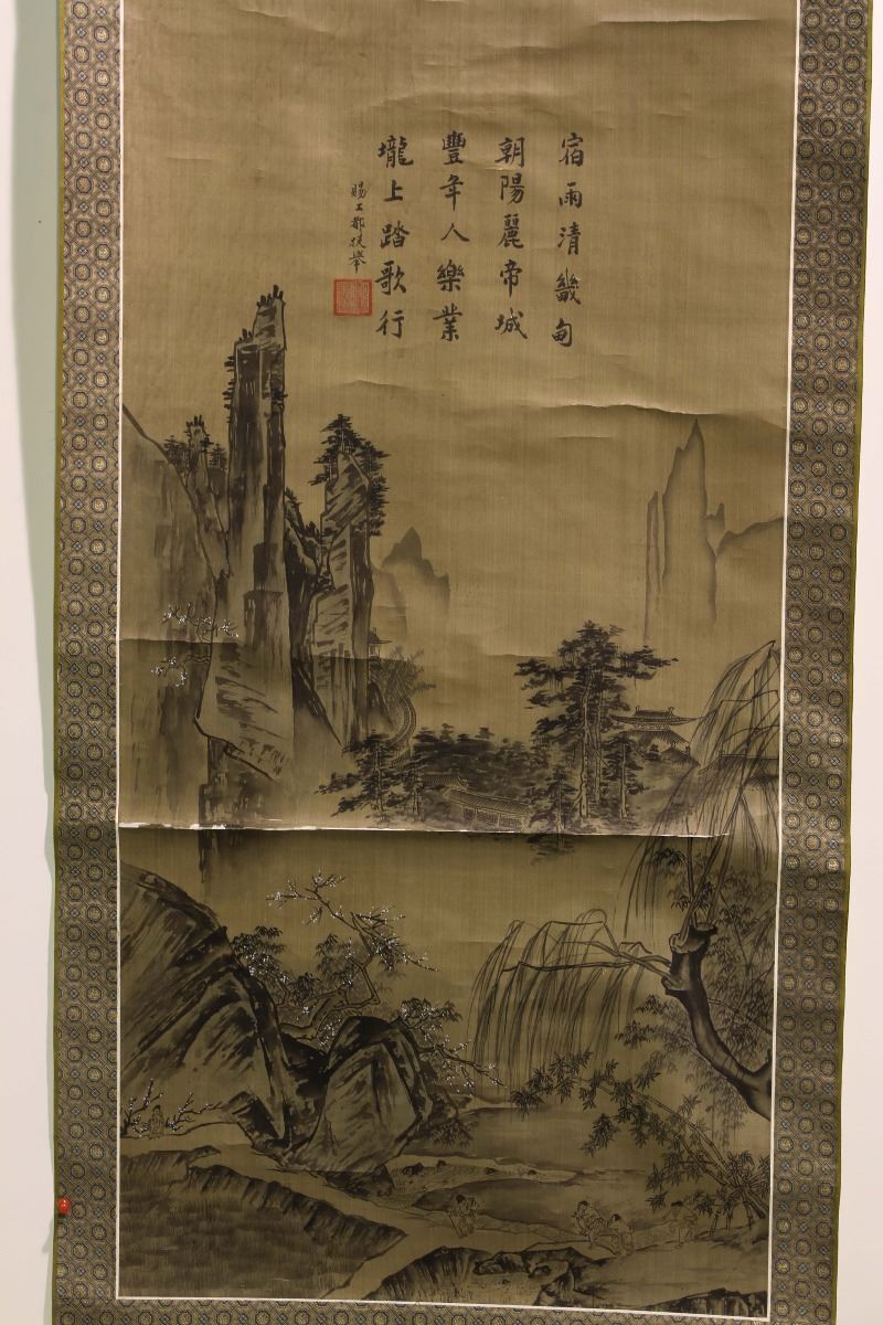 [CHINESE] A CHINESE PAINTING SCROLL OF LANDSCAPE L26" W:20"山水画踏歌图立轴