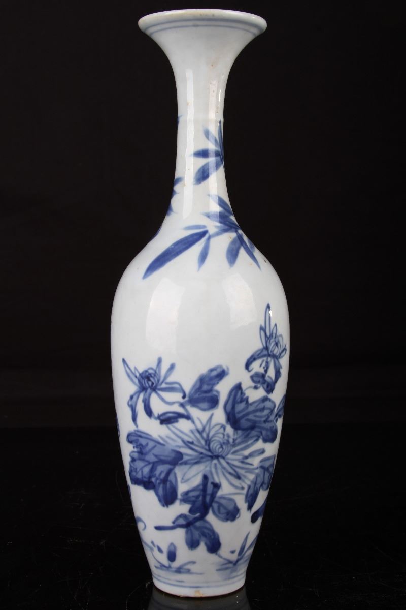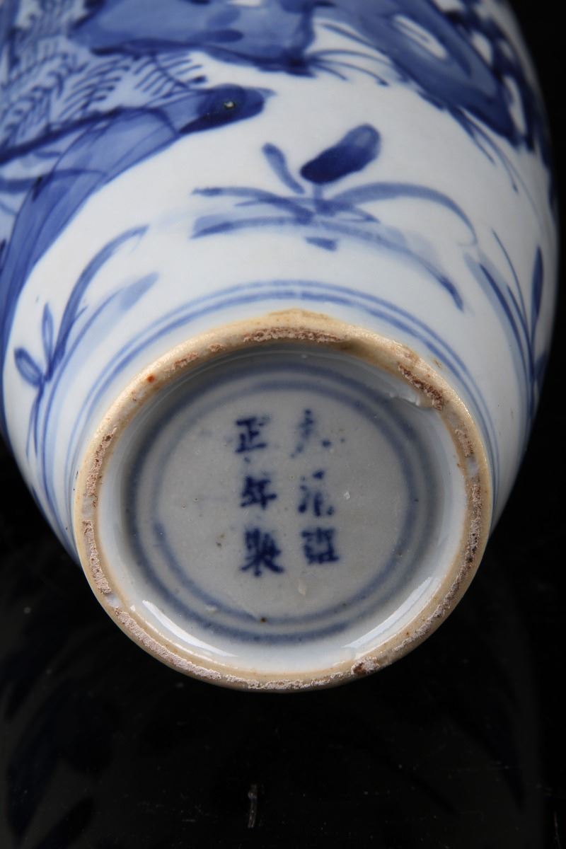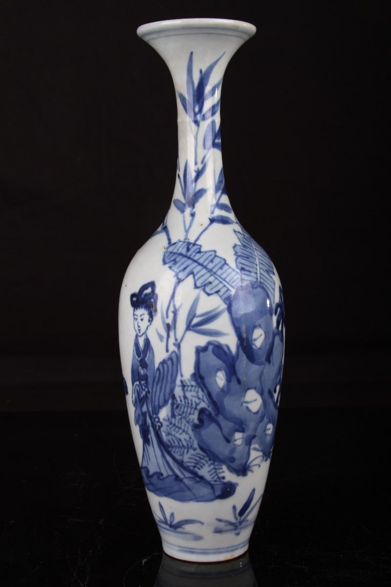 [CHINESE]A "DA QING YONG ZHENG NIAN ZHI"MARKED BLUE AND WHITE VASE PAINTED WITH FIGURES W:3.25" H:11.25"大清雍正年制款青花人物觀音瓶
