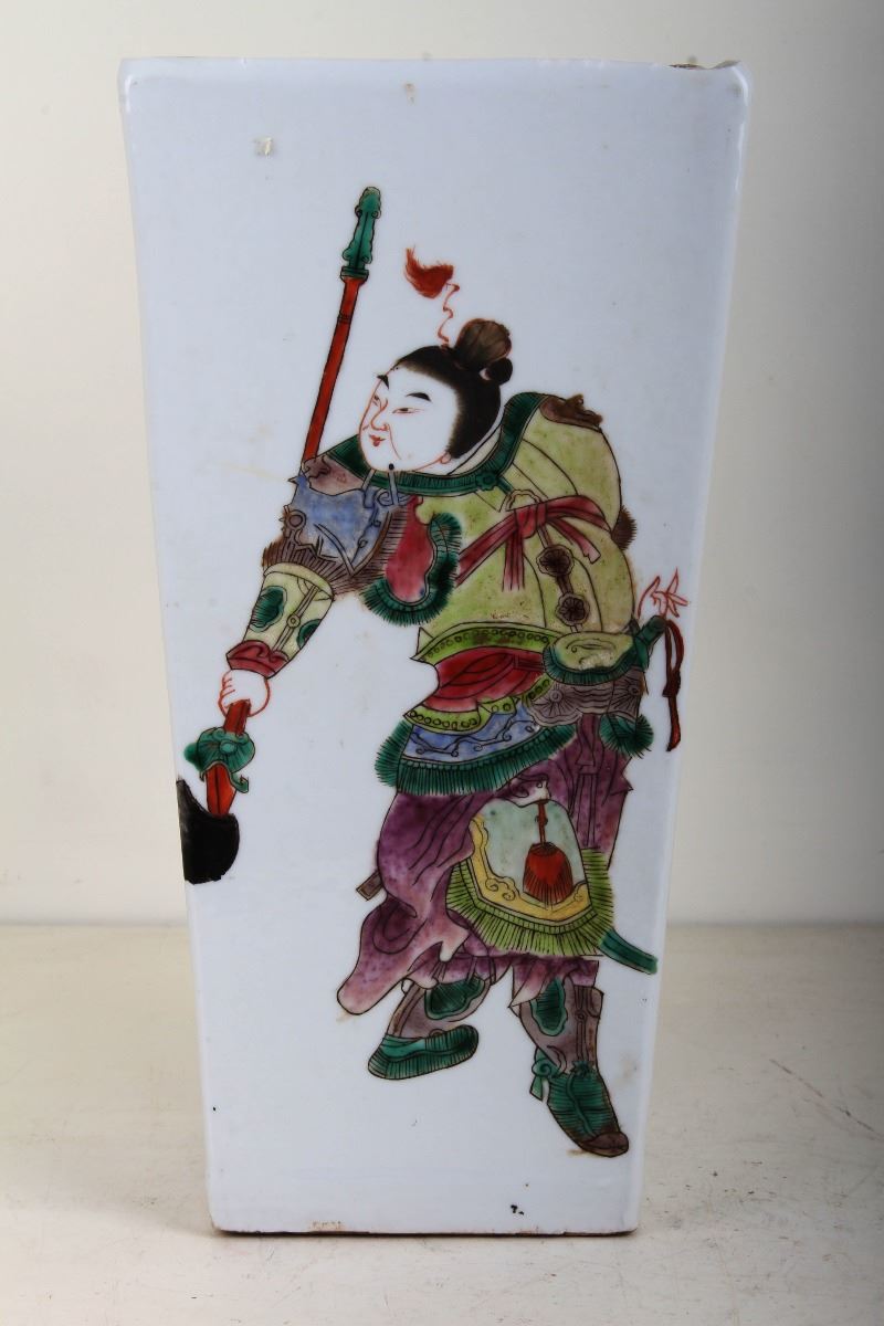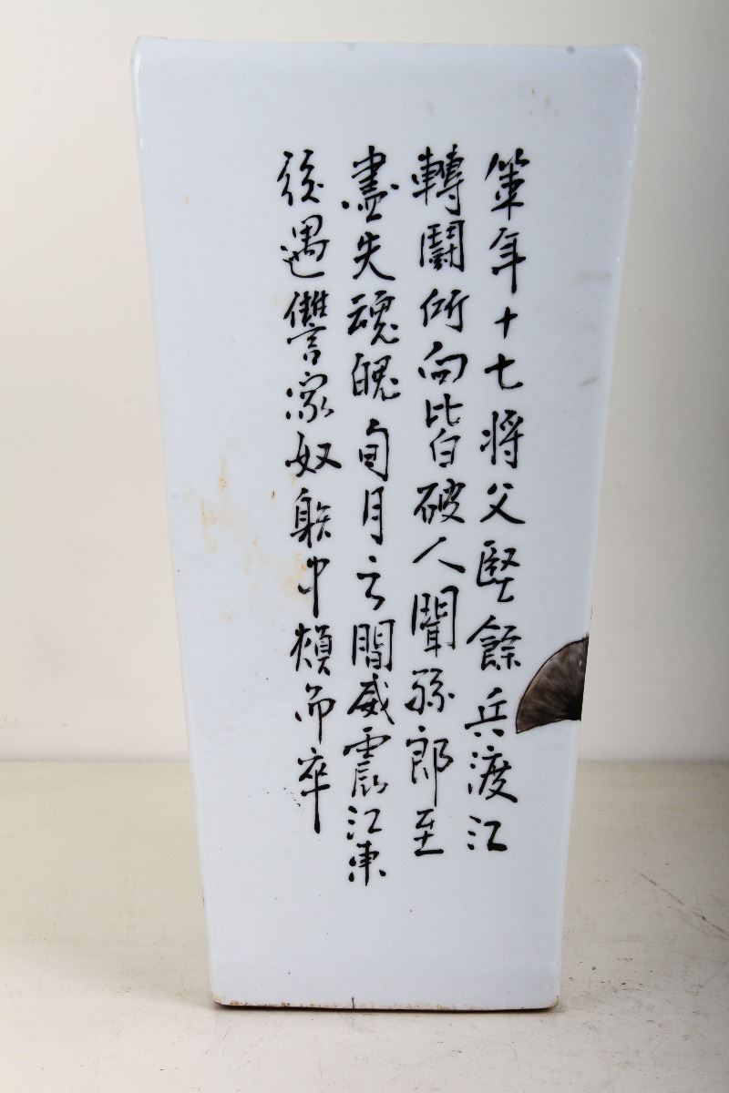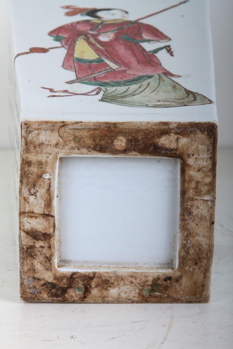 [CHINESE]A FAMILLE ROSE PORCELAIN VASE PAINTED WITH FIGURES (HAS DAMAGE)W:5.5" H:10"粉彩四方人物诗文瓶(有残)