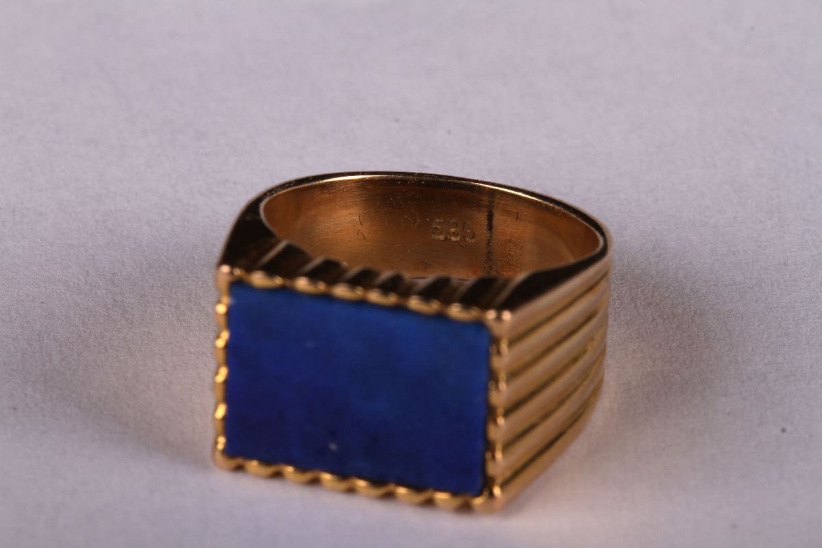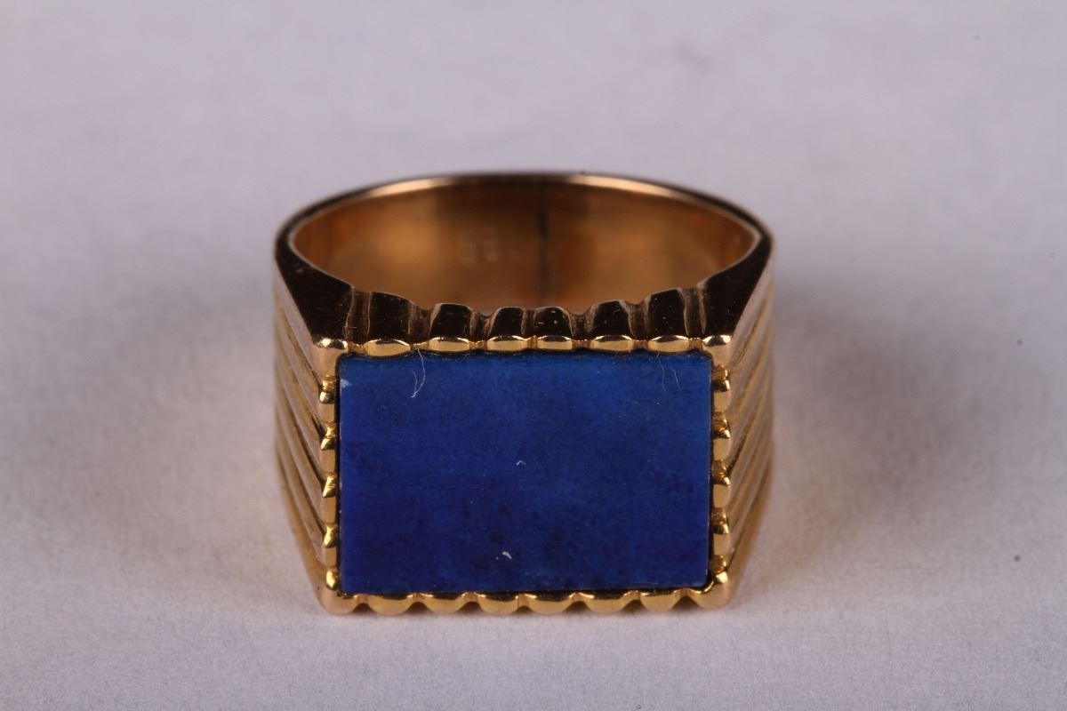 [CHINESE]A GILT SILVER RING WITH LAPIS 银镀金戒指镶青金石戒面