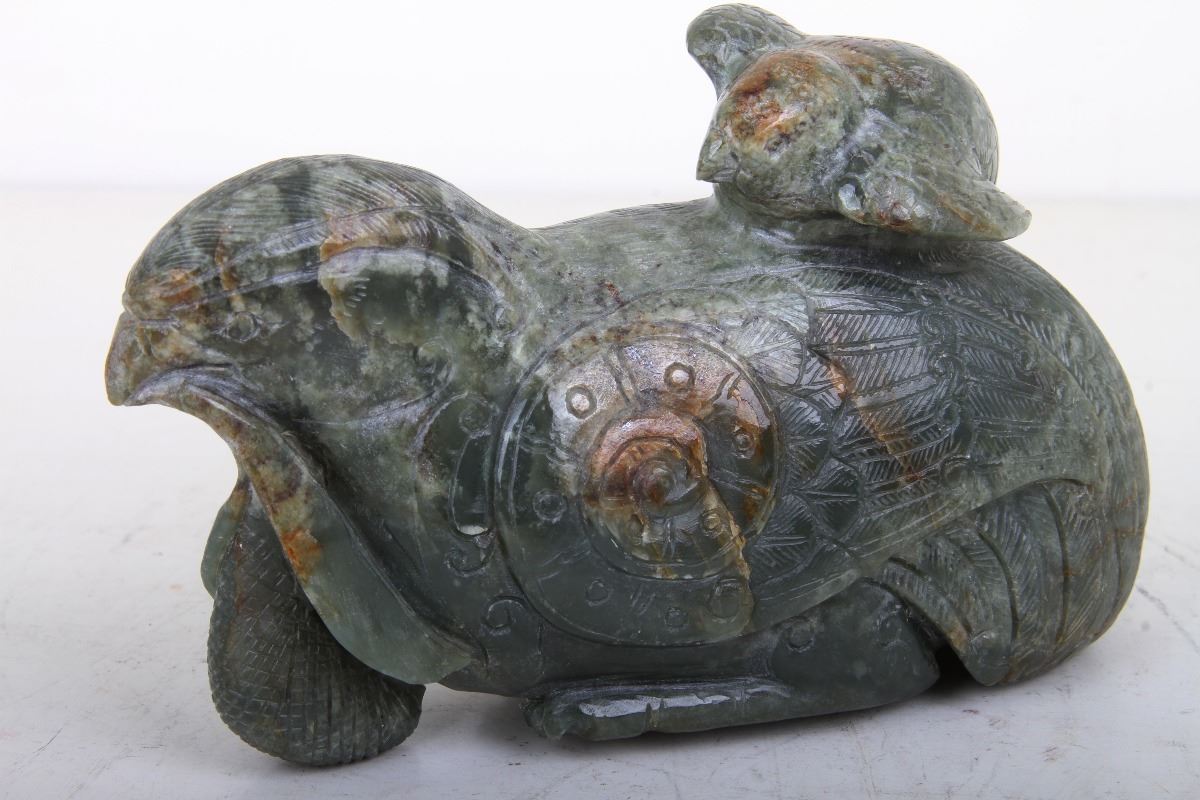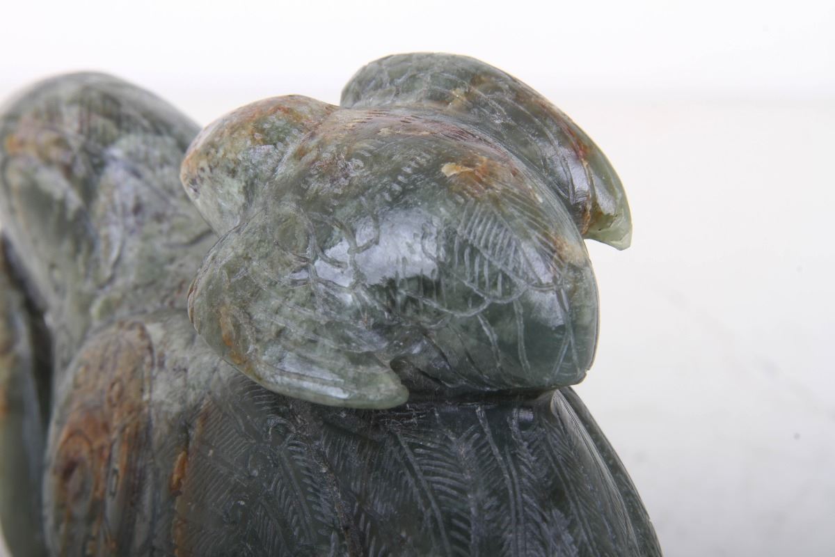 [CHINESE]A JADE CARVED BIRD SHAPED ORNAMENT L:5.25" W:2" H:3.5"玉雕飞鸟型摆件