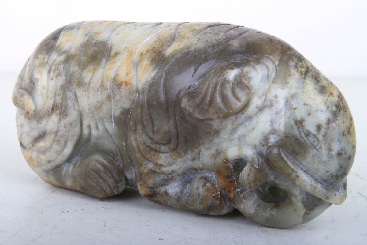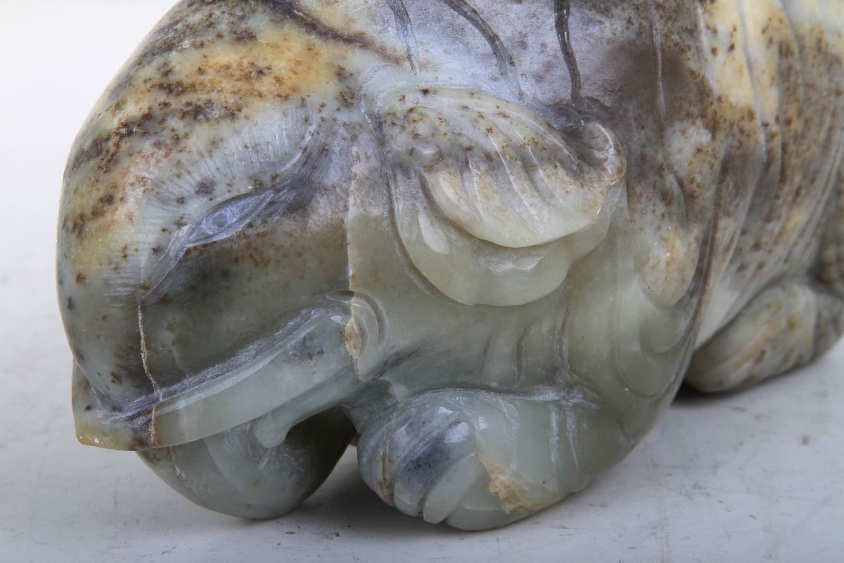 [CHINESE]A JADE CARVED ELEPHANT SHAPED ORNAMENT L:6.5" W:2" H:3"玉雕”象“型摆件