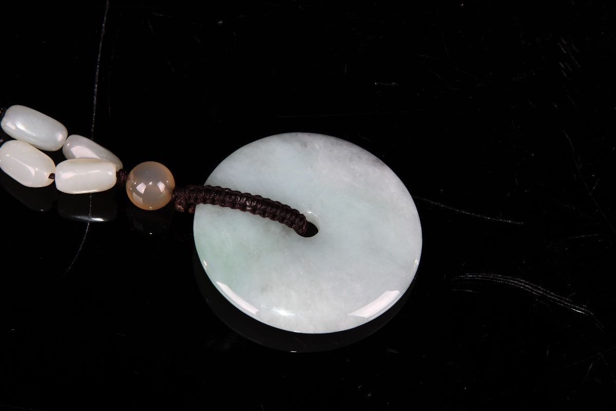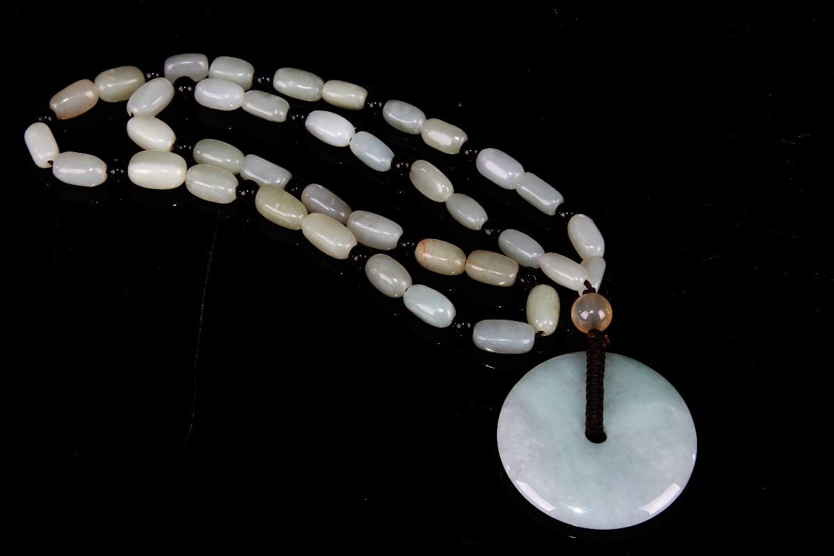 [CHINESE]A JADE NECKLACE WITH JADE PENDANT W:1.75"玉雕平安扣挂链