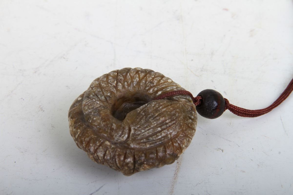 [CHINESE]A JADE PENDANT CARVED WITH DRAGON W:1.35"蟠龙纹古玉佩一只