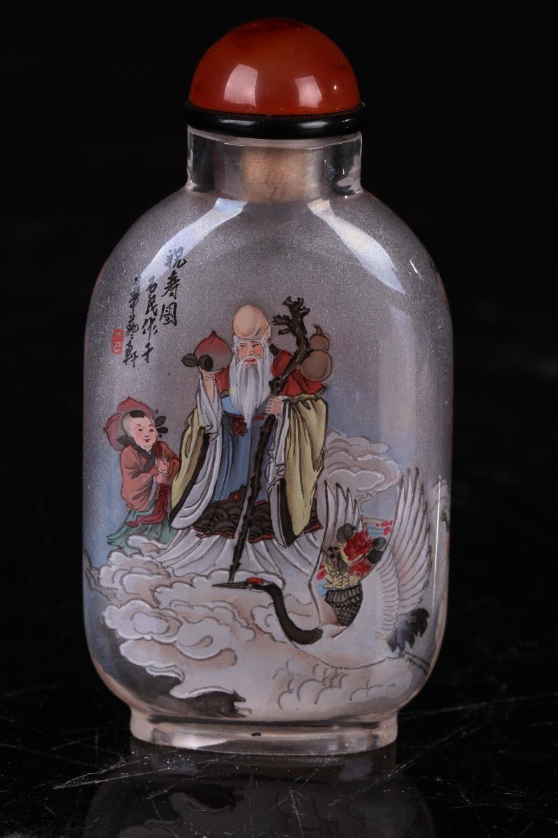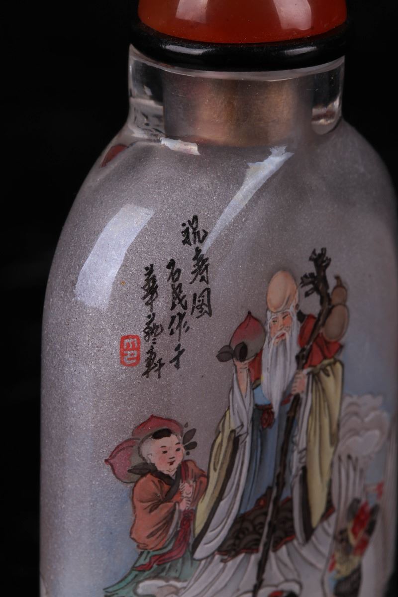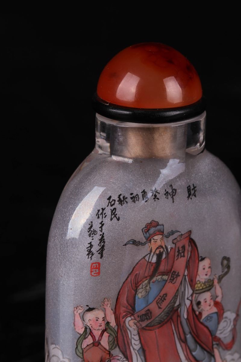 [CHINESE]A LATE 19TH CENTURY INSIDE PAINTING SNUFF BOTTLE WITH GOD OF WEALTH W:2" H:3"十九世纪后祝寿图内画鼻烟壶