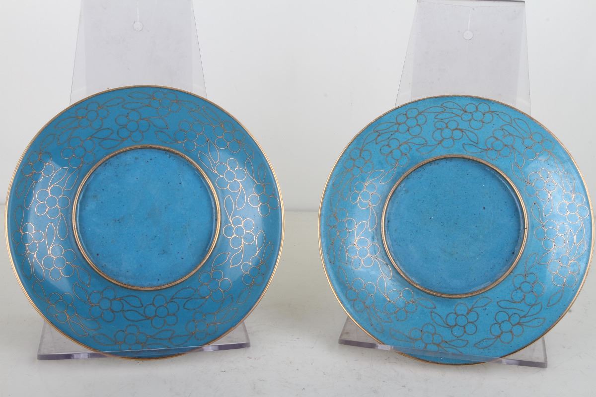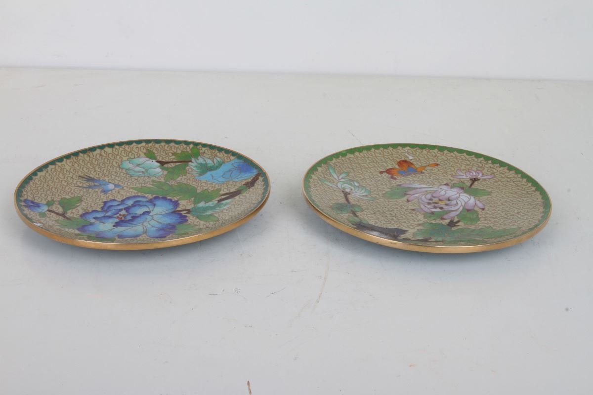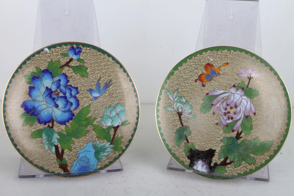 [CHINESE]A PAIR OF CLOISONN ENAMEL PLATE PAINTED WITH FLOWERS AND BIRDS W:6" H:0.5"十九世纪后景泰蓝四季花卉花鸟纹盘一对