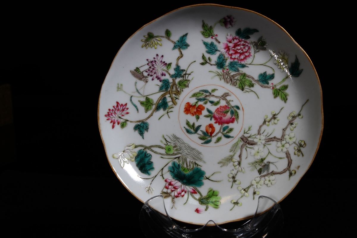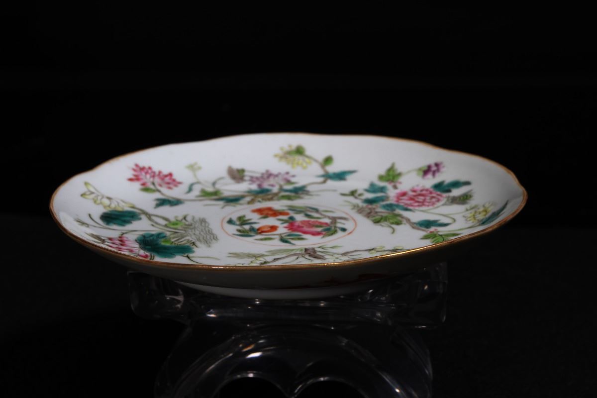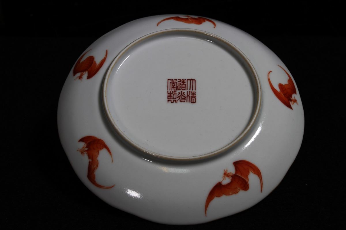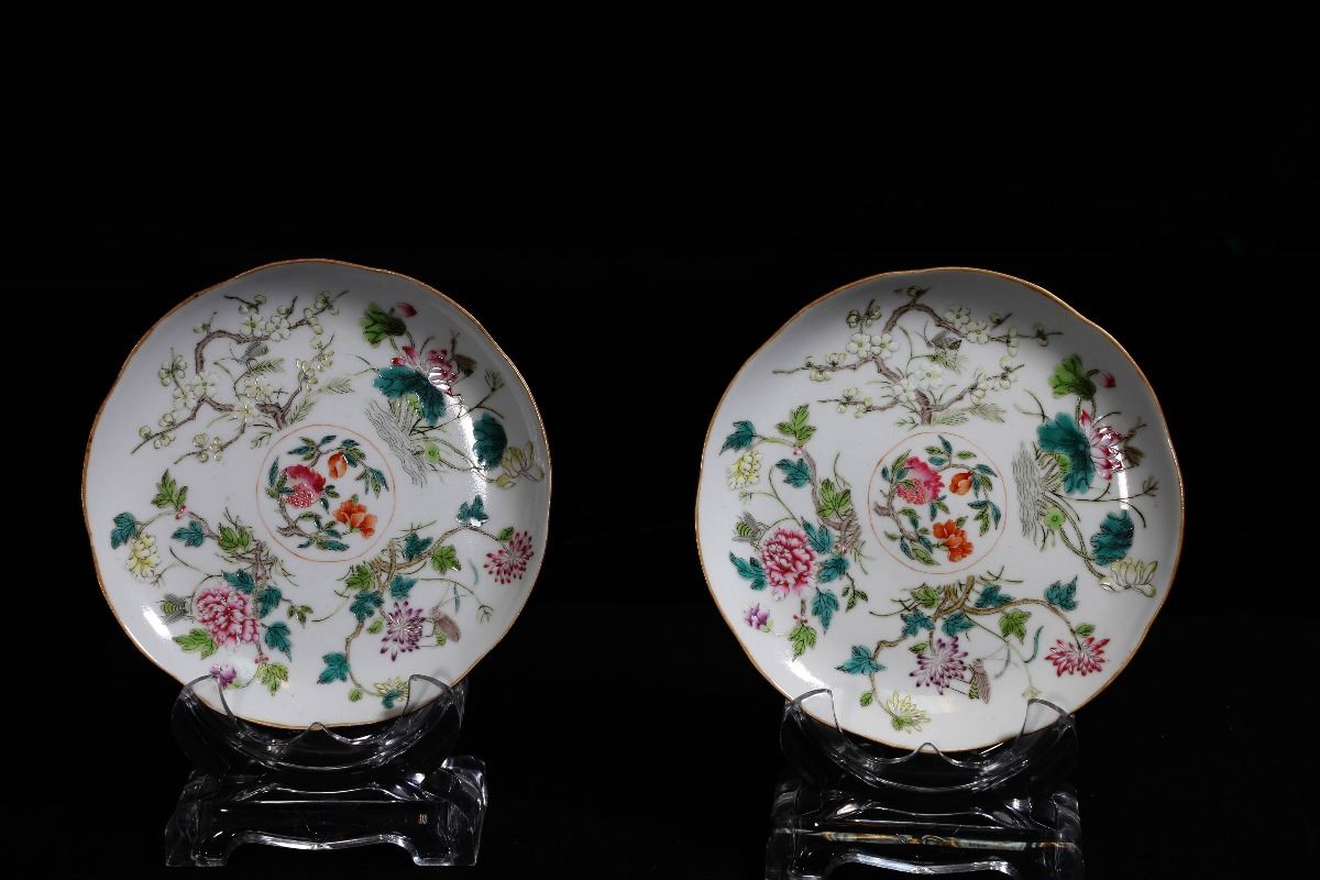 [CHINESE]A PAIR OF "DA QING DAO GUANG NIAN ZHI"MARKED FAMILLE ROSE PORCELAIN PLATE PAINTED WITH BATS AND FLOWERS W:5.5" H:0.8"大清道光年制款粉彩五蝠虫草纹盘一对