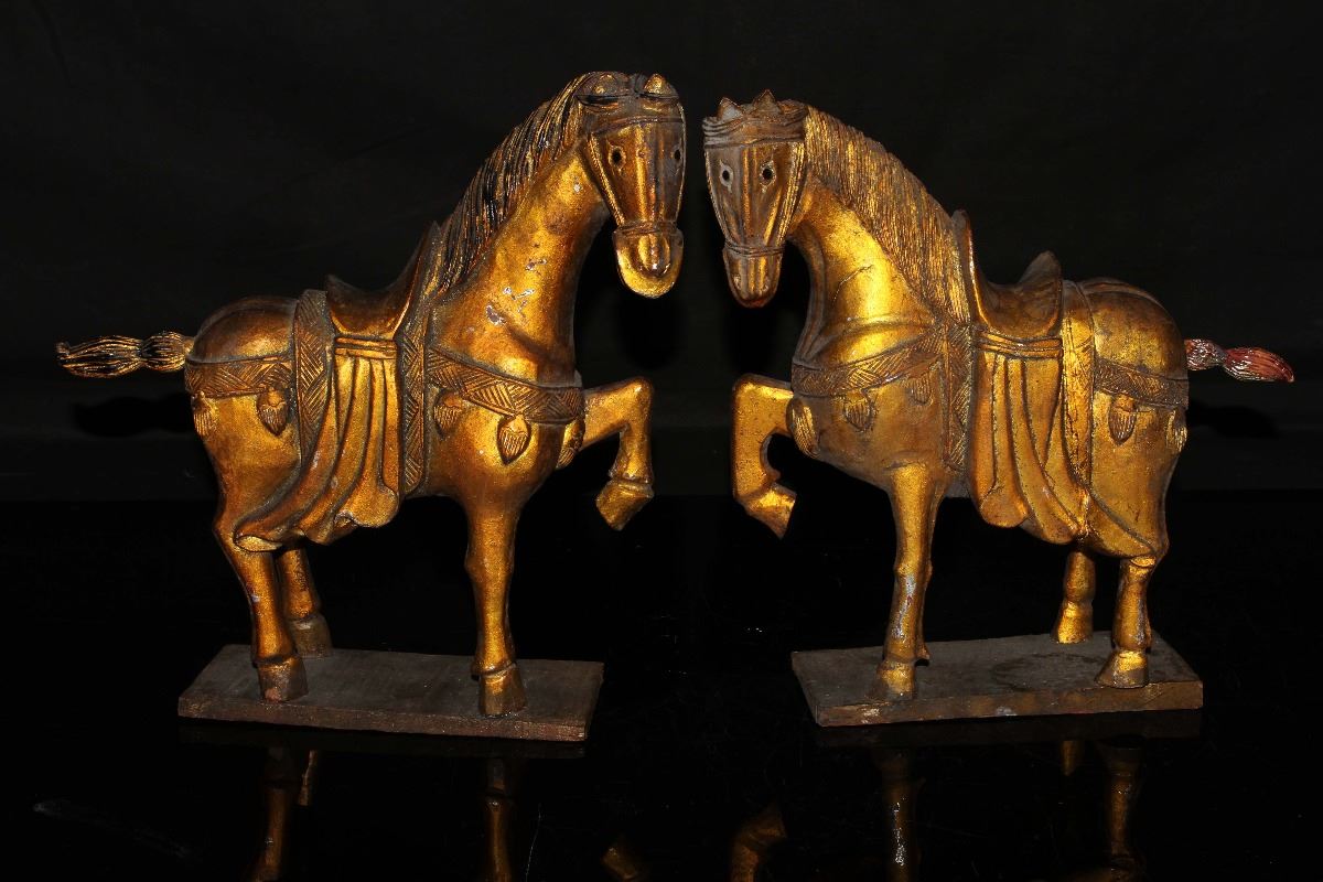 [CHINESE]A PAIR OF GILT WOOD CARVED HORSES 木雕鎏金马一对