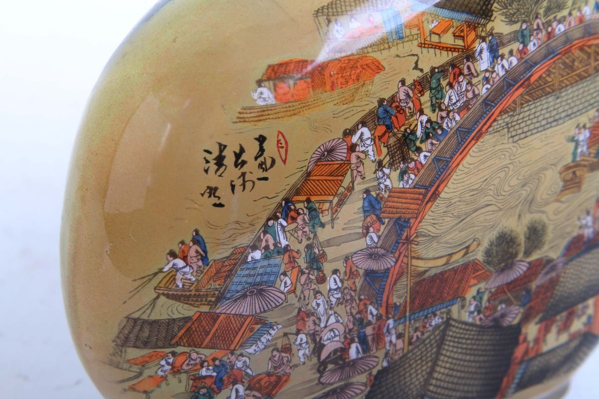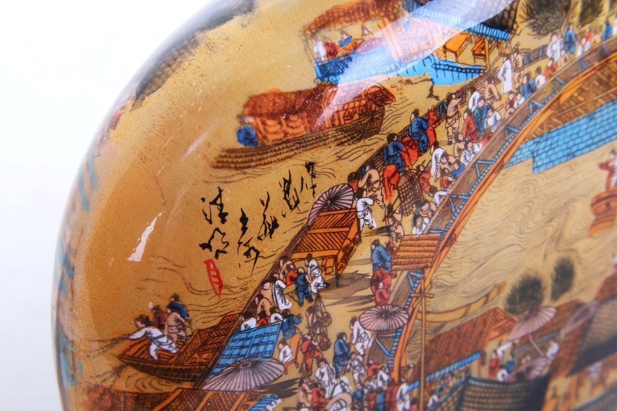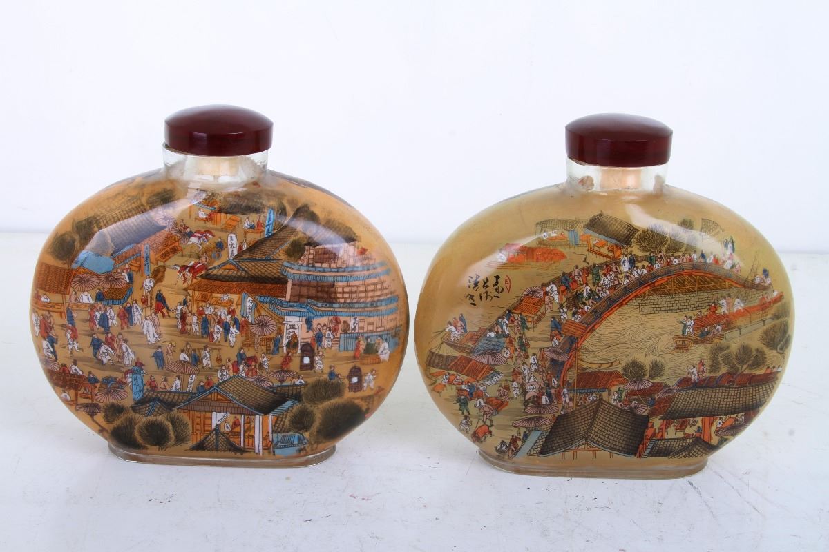 [CHINESE]A PAIR OF INSIDE PAINTING SNUFF BOTTLE PAINTED WITH PICTURE OF THE RIVERSIDE SCENCE OF PURE BRIGHTNESS L:4.75" W:1.75" H:4.5"清明上河图内画鼻烟壶一对
