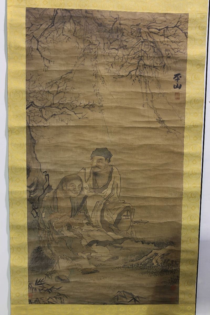 [CHINESE]A "PING SHAN"MARKED CHINESE PAINTING OF FIGURES L:49.5" W:26.3"平山款张路道教人物设色绢本