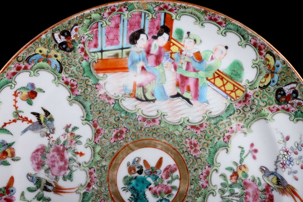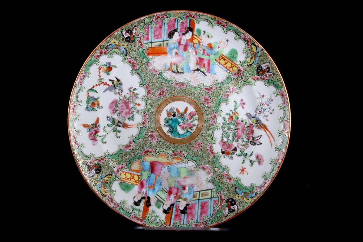 [CHINESE]A QING DYNASTY QIAN LONG STYLED CENTURY EXPORT GUANG CAI GLAZED PROCELAIN PLATE PAINTED WITH FIGURES AND FLOWERS W:9.75" H:0.75"乾隆式广彩人物花鸟纹开光盘