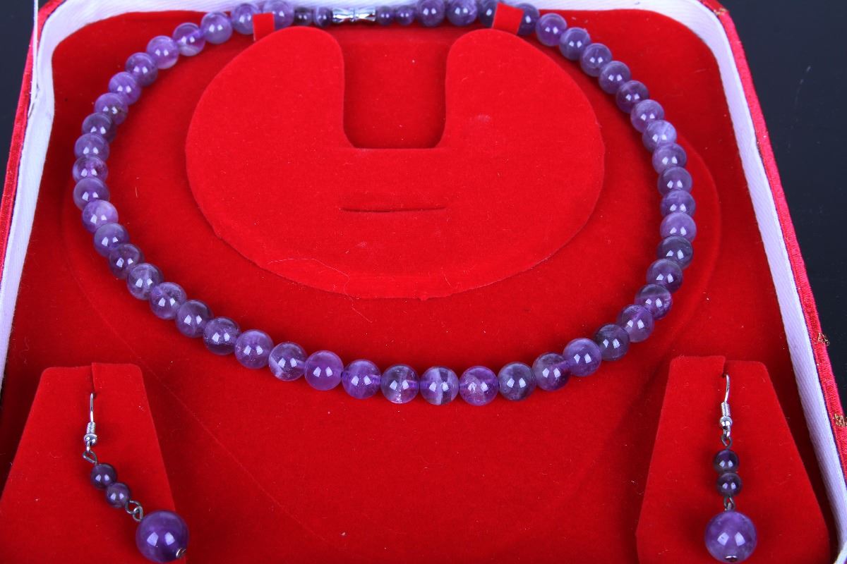 [CHINESE]A SET OF AMETHYST NECKLACE AND EAR RINGS (3 ITEMS)(MEASURED WITH THE LARGEST ITEM) 紫水晶制项链及耳饰组(三件)(最大物品计量)