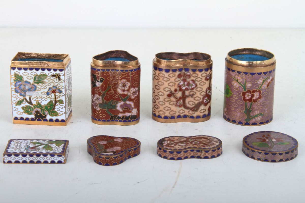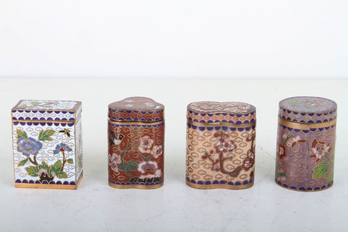 [CHINESE]A SET OF CLOISONN ENAMEL BOX PAINTED WITH FLOWERS (4 ITEMS) (MEASURED WITH THE LARGEST ITEM) L:1.75" W:1" H:2.25"景泰蓝花卉纹盖盒组(四件) (最大物品计量)