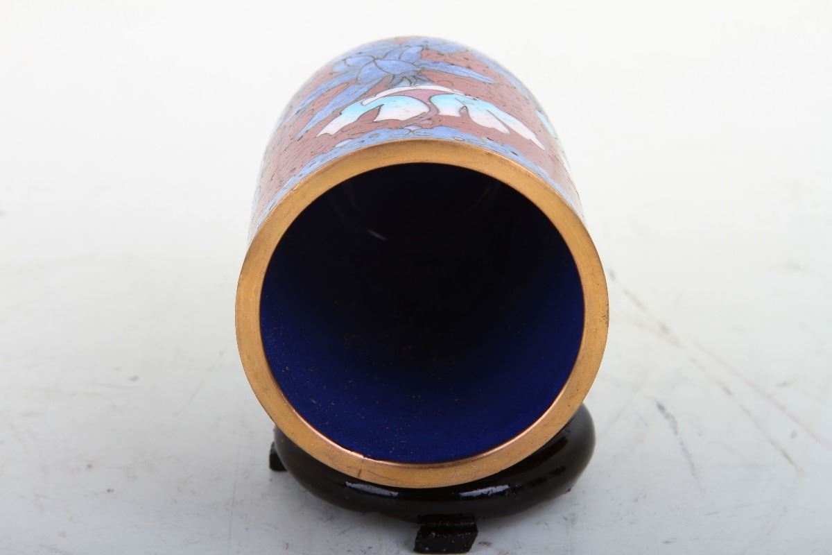[CHINESE]A SET OF CLOISONN ENAMEL BRUSH POT PAINTED WITH FLOWRS (3 ITEMS) (MEASURED WITH THE LARGEST