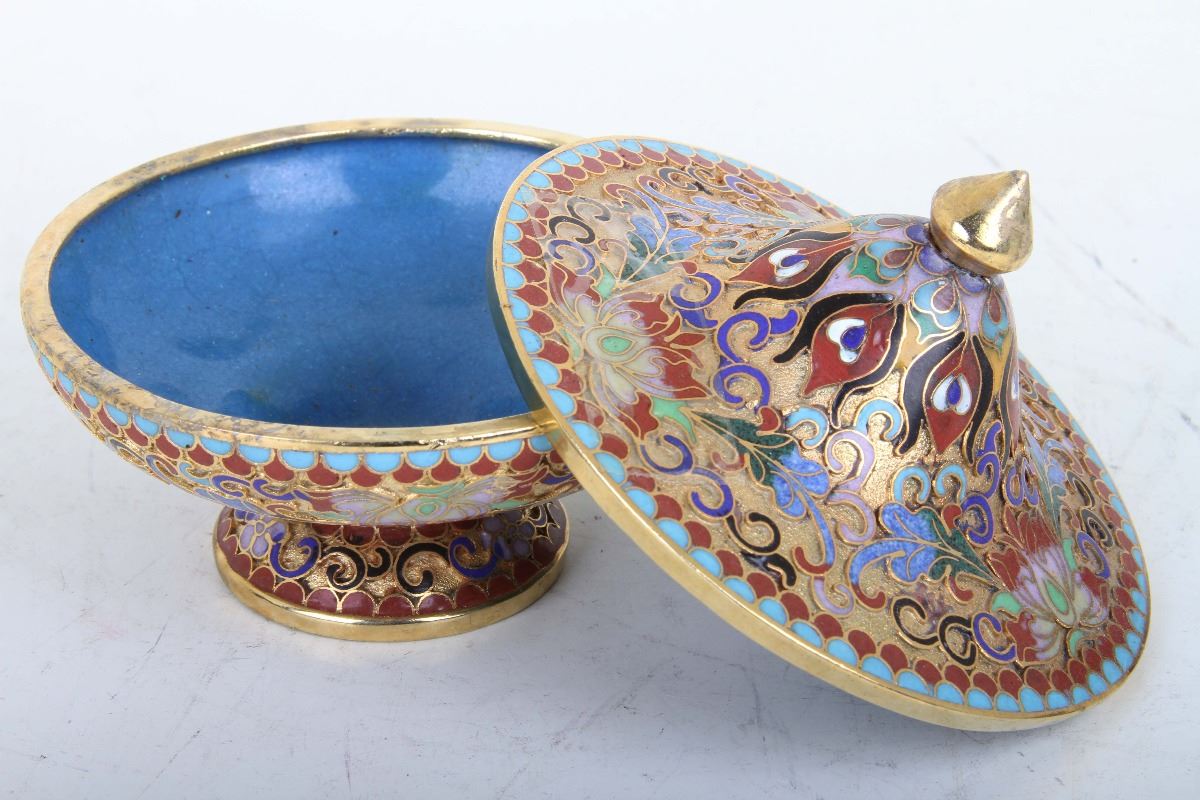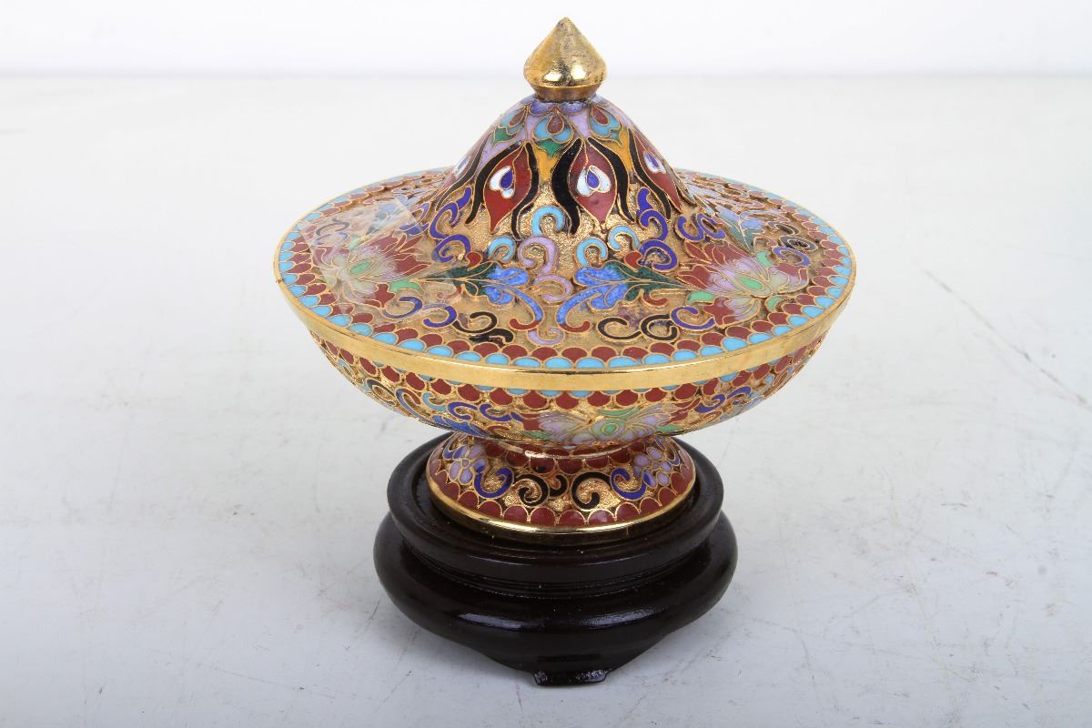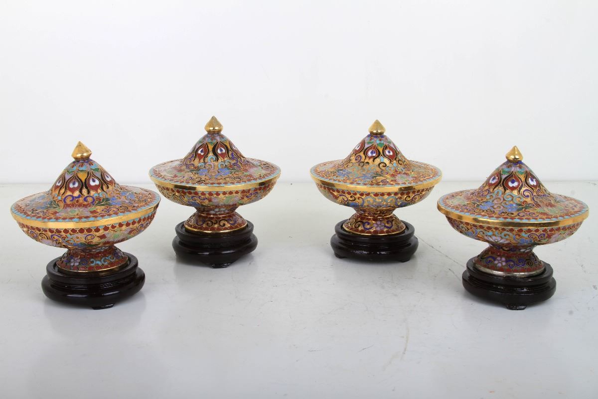 [CHINESE]A SET OF CLOISONN ENAMEL TEA CUPS (4 ITEMS) (MEASURED WITH THE LARGEST ITEM)W:4" H:3.25"景泰藍花卉纹盖碗一组(4件)(最大物品计量)