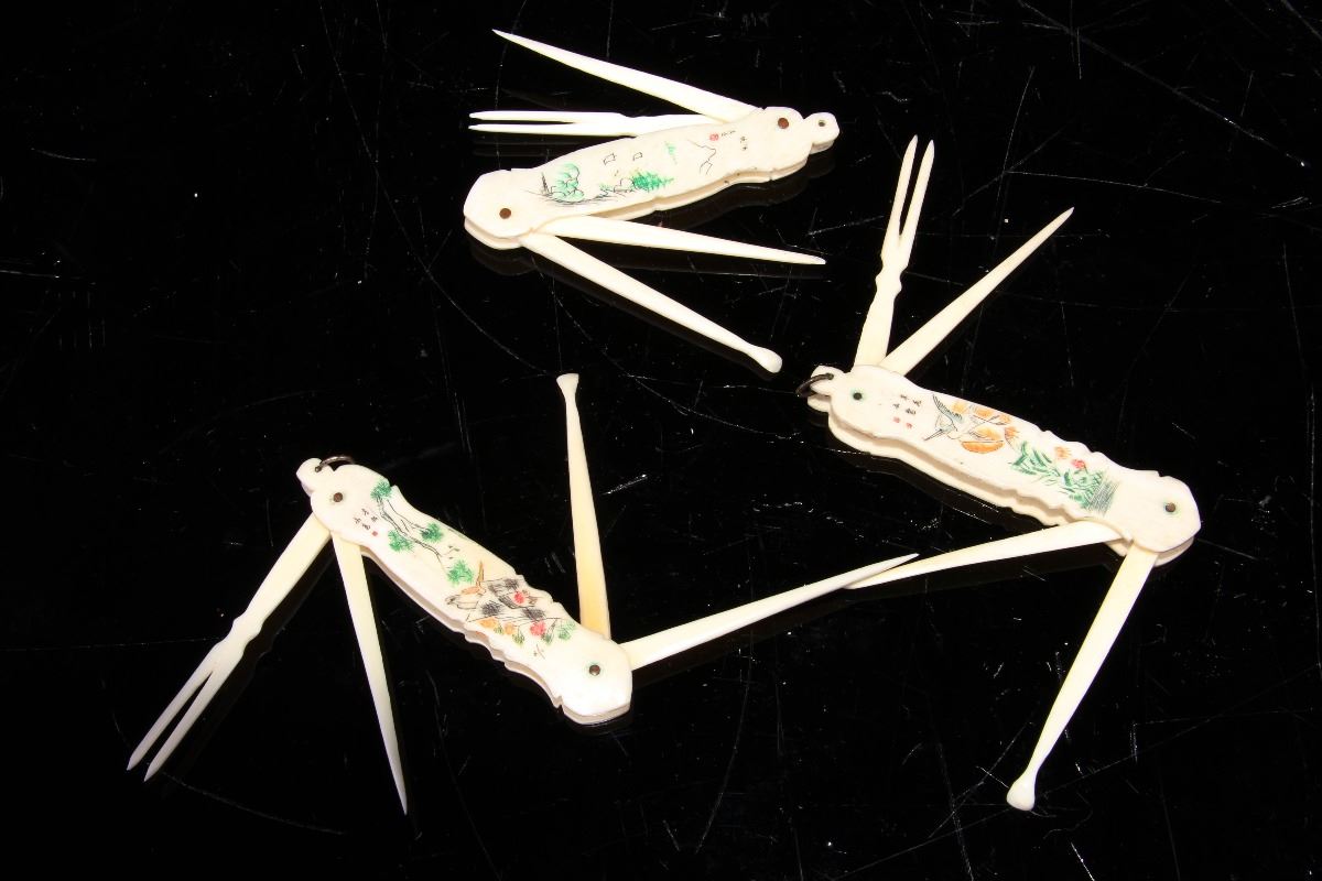[CHINESE]A SET OF IVORY HANDY TOOLS(3 ITEMS) (TOTAL 14g) L:2.5" H:0.5" DISCLAIMER: This item is restricted from export out of the country due to protection under CITES (Convention on International Trade in Endangered Species). EXPORT IS AT THE BUYER'S RISK. Please note that bidders from the United States are not allowed to have ivory or rhino horn shipped into the country.象牙牙籤及挖耳勺一組 (3件)共(14g)