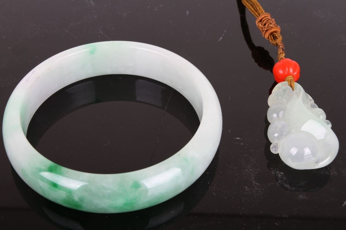 [CHINESE]A SET OF JADE CARVED BANGLE AND PENDANT (2 ITEMS) W:2.25"玉质手镯及玉雕福豆挂件组(两件)