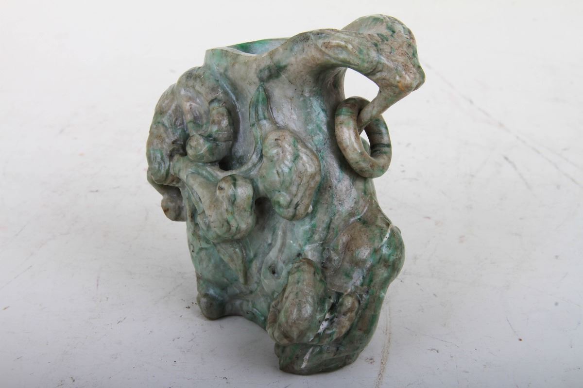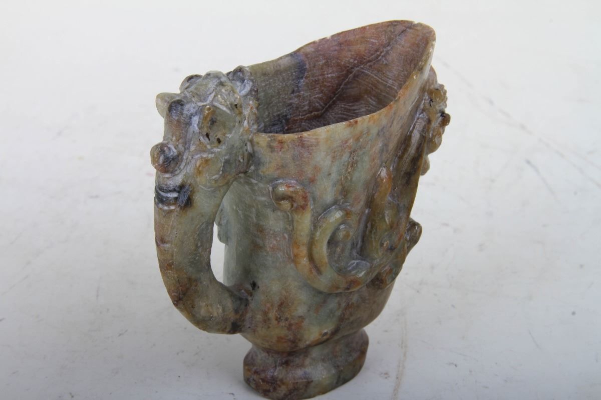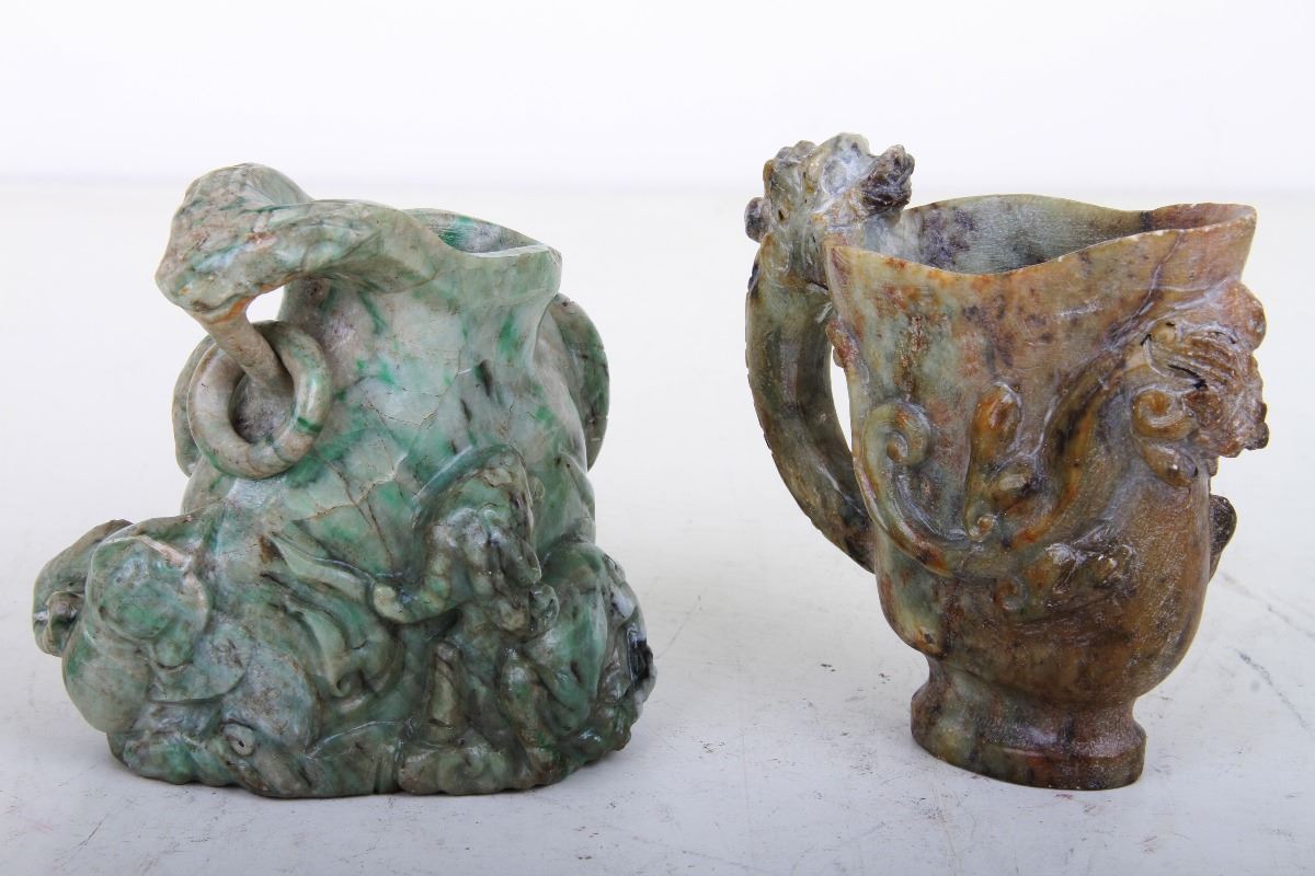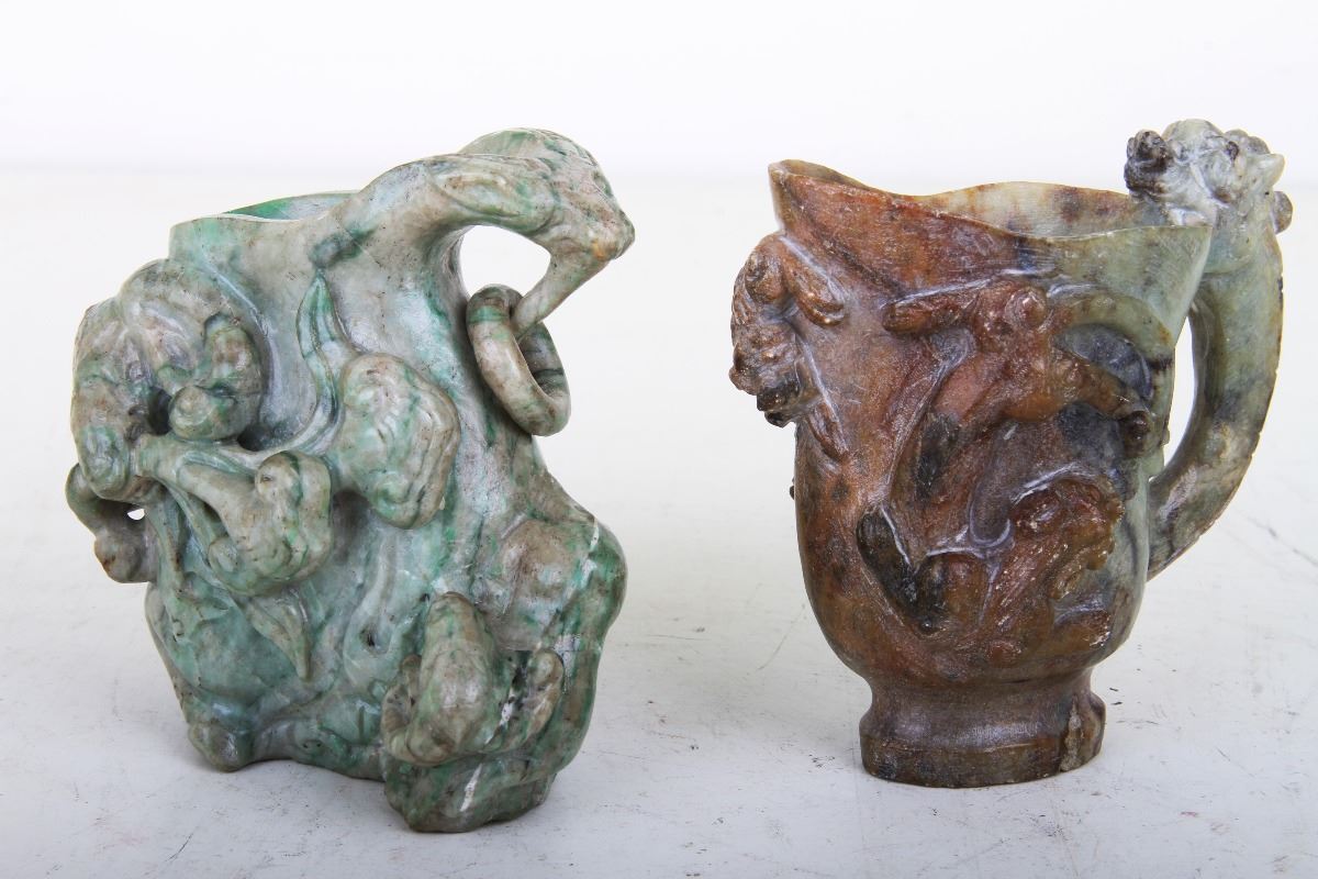 [CHINESE]A SET OF JADE CARVED WINE CUP WITH CHILONG HANDLE (2 ITEMS)(MEASURED WITH THE LARGEST ITEM