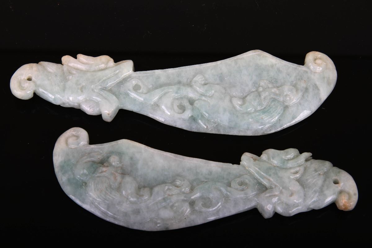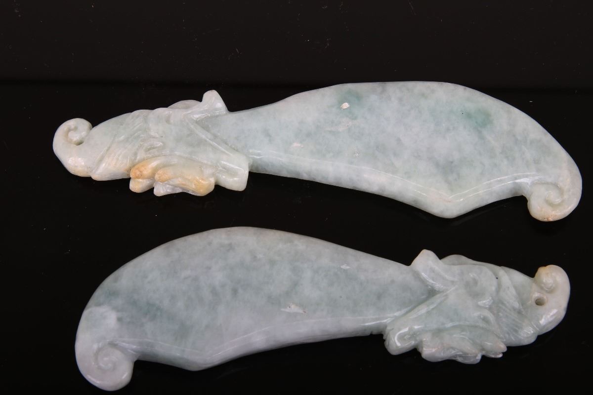 [CHINESE]A SET OF JADE PENDANTS L:5.25" H:1.75"玉雕龙头“福” 雕 手把件组(两件)