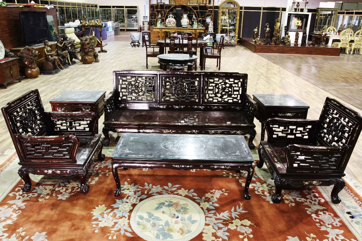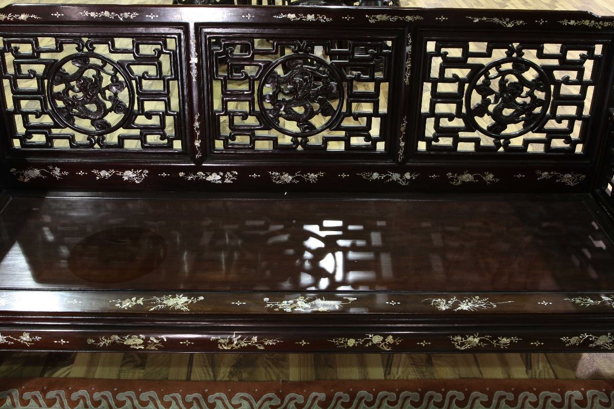 [CHINESE]A SET OF ROSEWOOD SOFA INLAID WITH THE MOTHER OF PEARL AND TEA TABLE L:72.5" W:24" H:30"紅木螺鈿沙發帶茶几一組