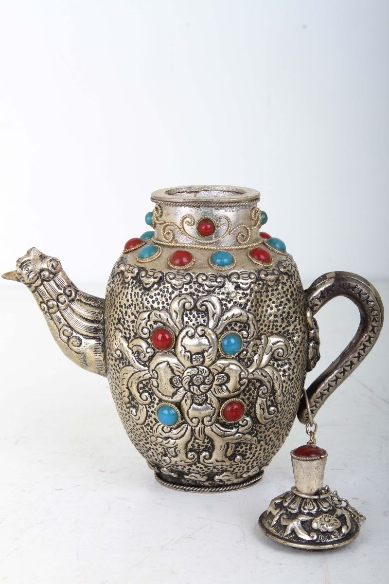 [CHINESE]A SET OF TIBETAN SLIVER TEA POT WITH PHOENIX HEAD(3 ITEMS)(MEASURED WITH THE LARGEST ITEM)