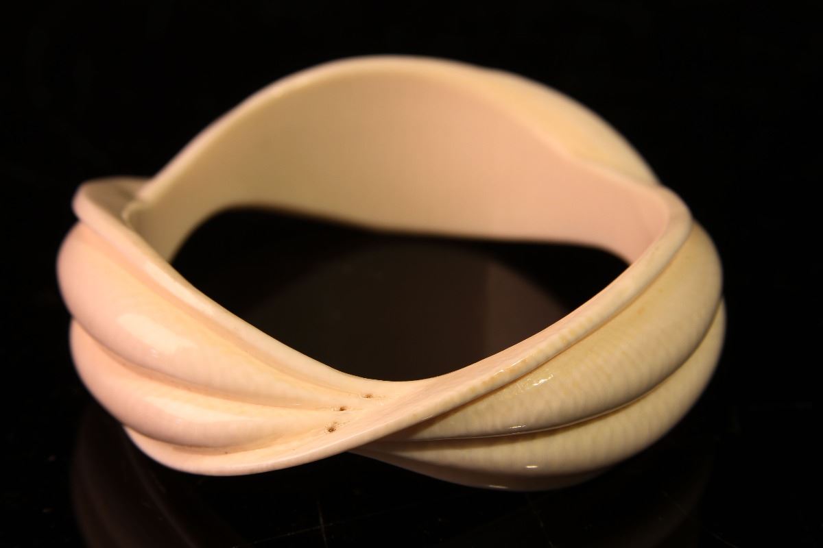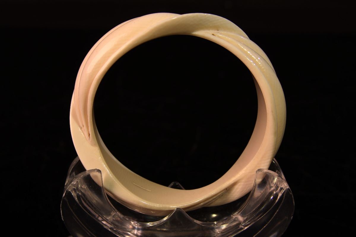 [CHINESE]A TWINE PATTERN IVORY BANGEL (38g) W:2.45" DISCLAIMER: This item is restricted from export out of the country due to protection under CITES (Convention on International Trade in Endangered Species). EXPORT IS AT THE BUYER'S RISK. Please note that bidders from the United States are not allowed to have ivory or rhino horn shipped into the country.象牙螺旋纹手镯 (38g)