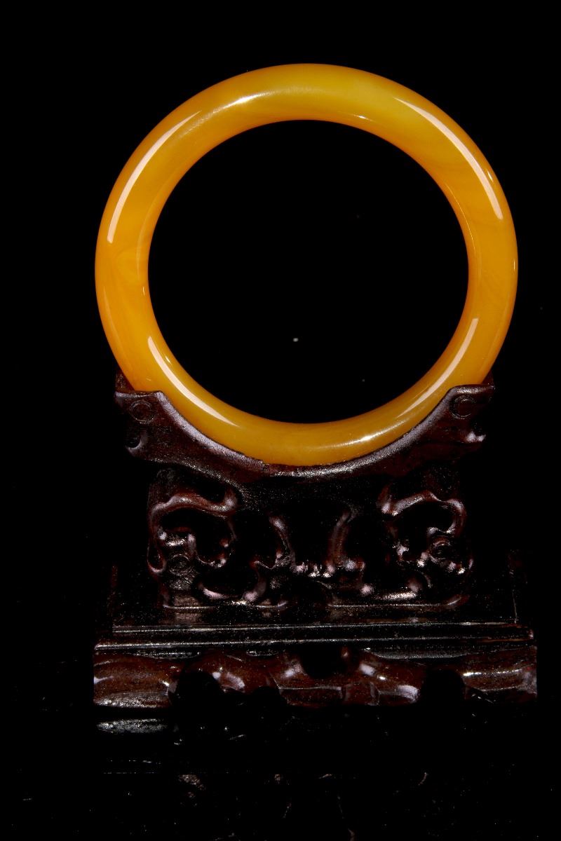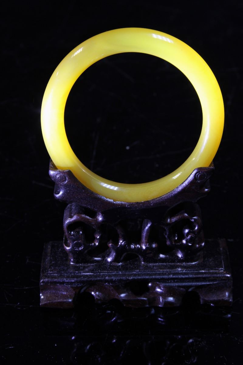[CHINESE] A YELLOW AGATE MADE BRACELET W:2.5" (NOT INCLUDING STAND)黄玛瑙雕手镯(不包含底座)