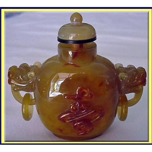 <tr><td>Title:CHINESE AGATE SNUFF BOTTLE W LION MASKS 19C</td></tr>