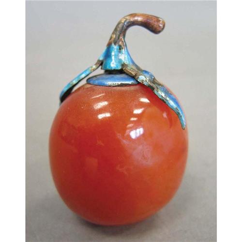 CHINESE AMBER SNUFF BOTTLE with opaque inclusions in the form of an apple height: 2"