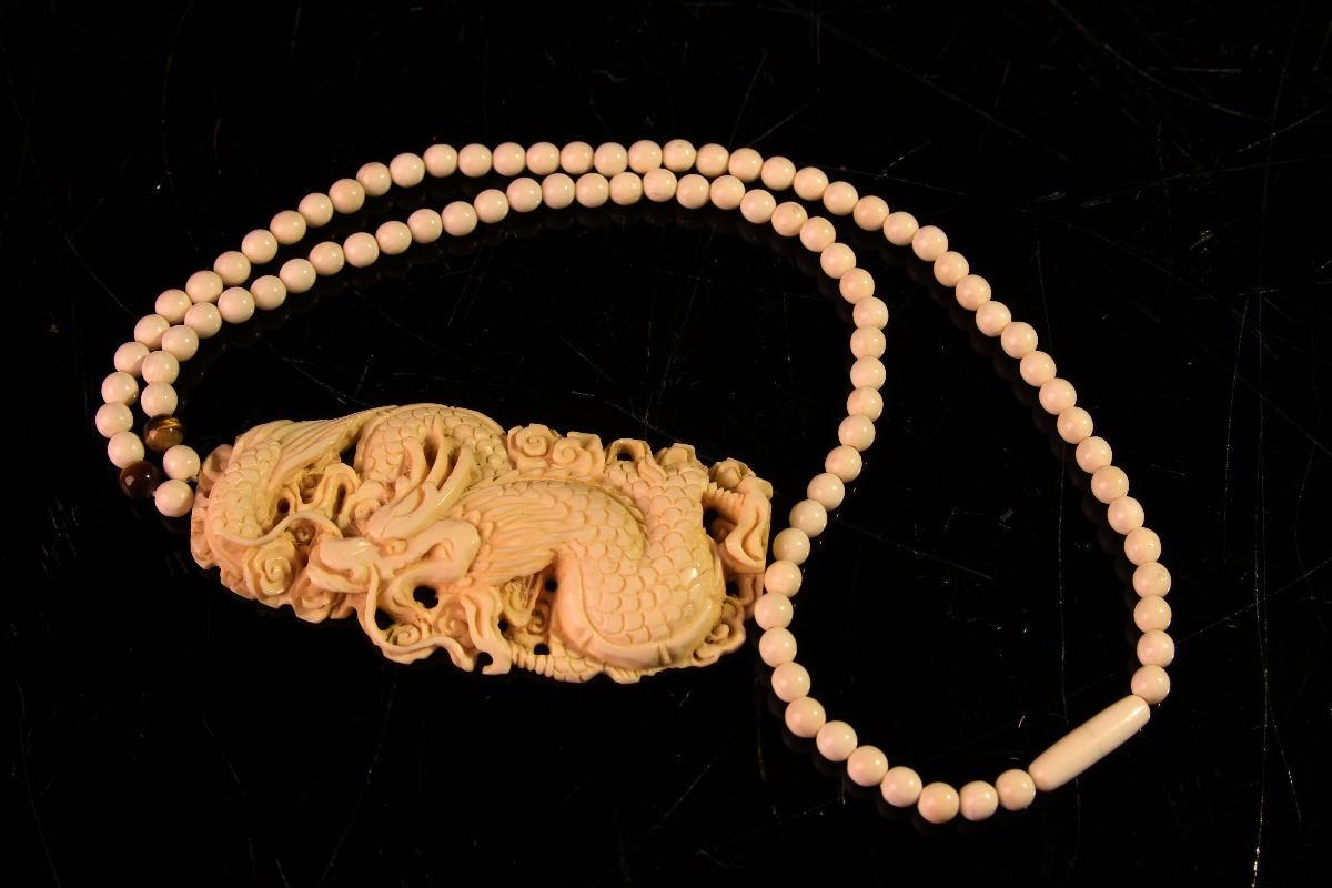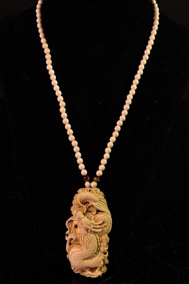 [CHINESE]AN IVORY BEADS AND PENDANT CARVED WITH DRAGON (26g) L:1.45" H:3" DISCLAIMER: This item is