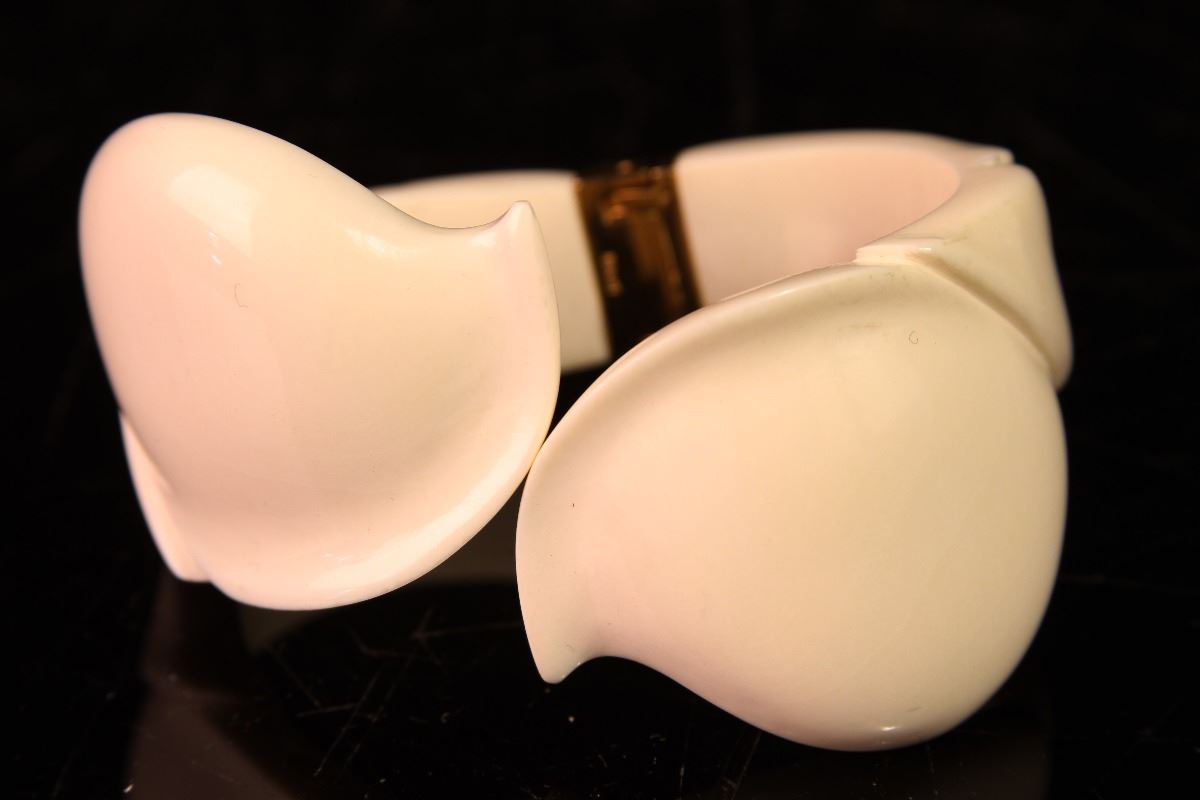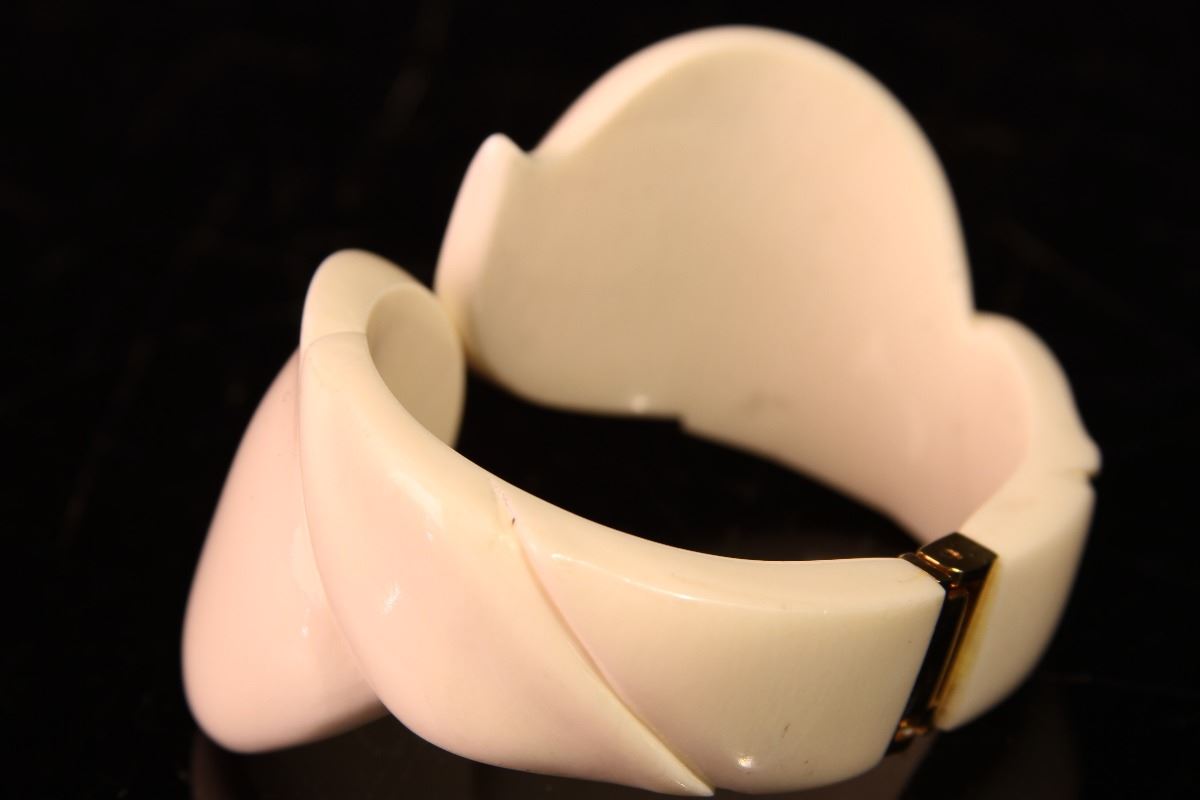 [CHINESE]AN IVORY LEAF SHAPED BANGEL (56g) W:2.25" DISCLAIMER: This item is restricted from export out of the country due to protection under CITES (Convention on International Trade in Endangered Species). EXPORT IS AT THE BUYER'S RISK. Please note that bidders from the United States are not allowed to have ivory or rhino horn shipped into the country.象牙叶形手镯 (56g)