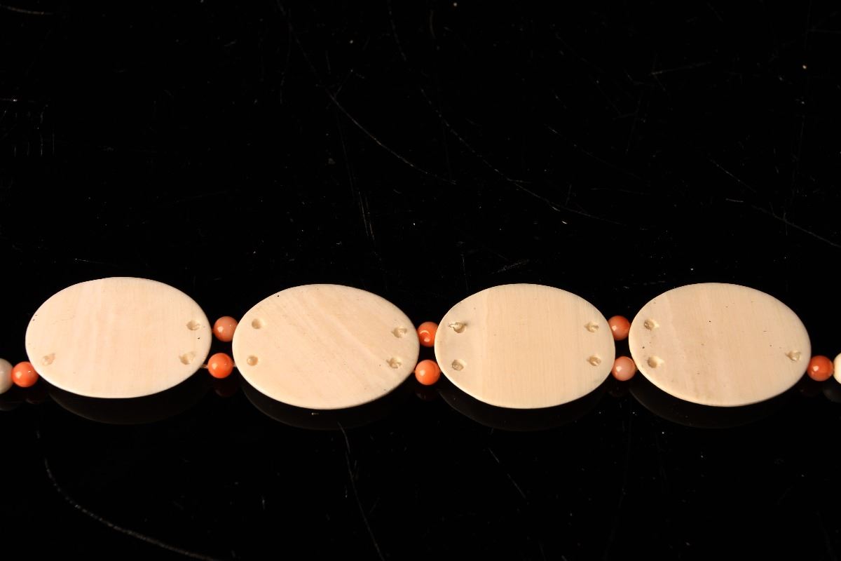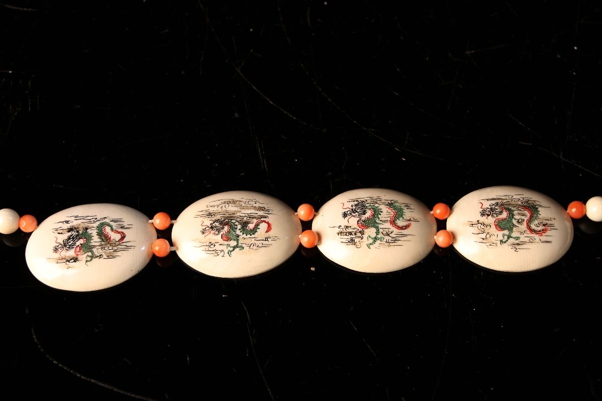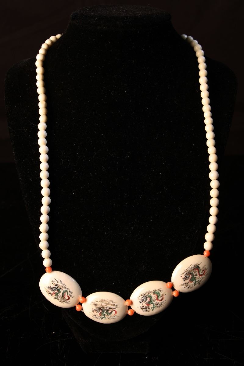 [CHINESE]AN IVORY NECKLACE PAINTED WITH DRAGONS (28g) L:23" DISCLAIMER: This item is restricted from