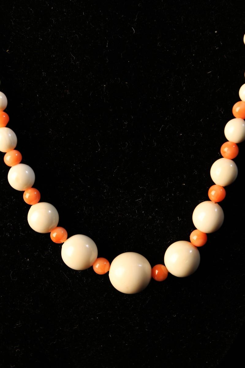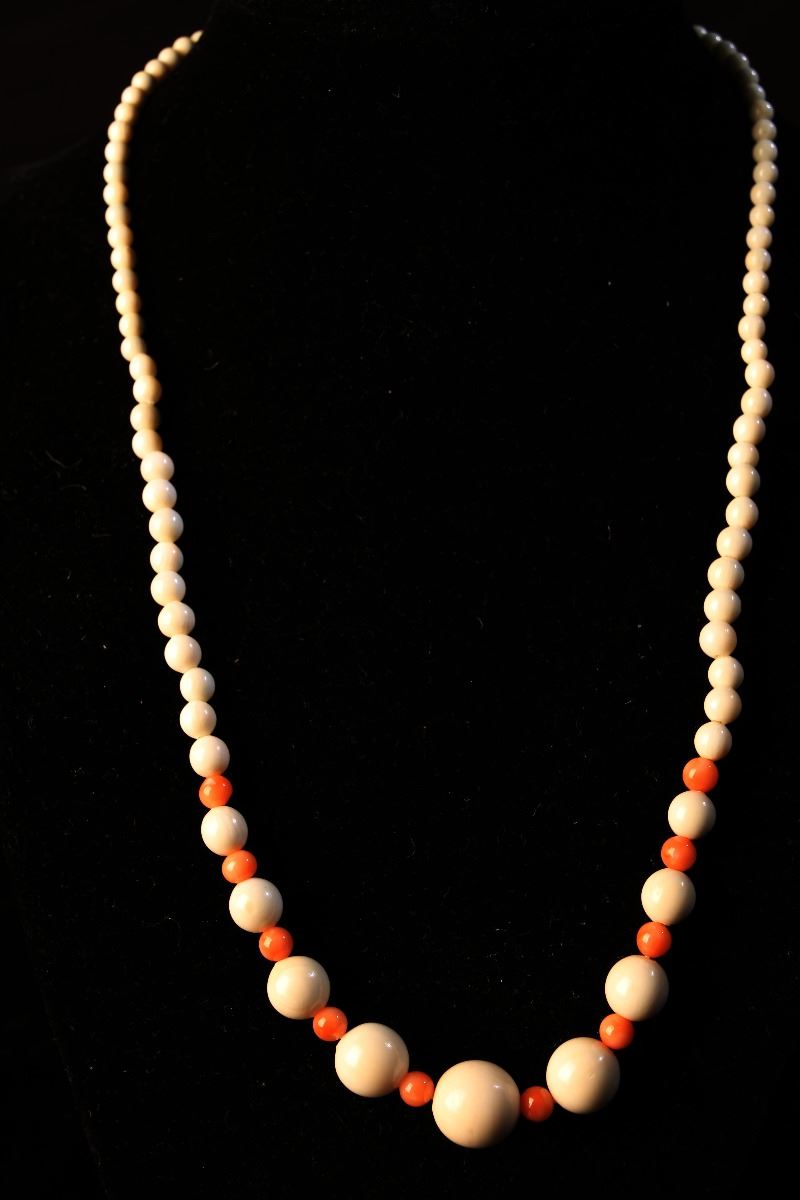 [CHINESE]AN IVORY NECKLACE WITH CORAL BEADS (13g) L:19" DISCLAIMER: This item is restricted from export out of the country due to protection under CITES (Convention on International Trade in Endangered Species). EXPORT IS AT THE BUYER'S RISK. Please note that bidders from the United States are not allowed to have ivory or rhino horn shipped into the country.象牙配珊瑚珠項鏈 (100 颗) (13g)